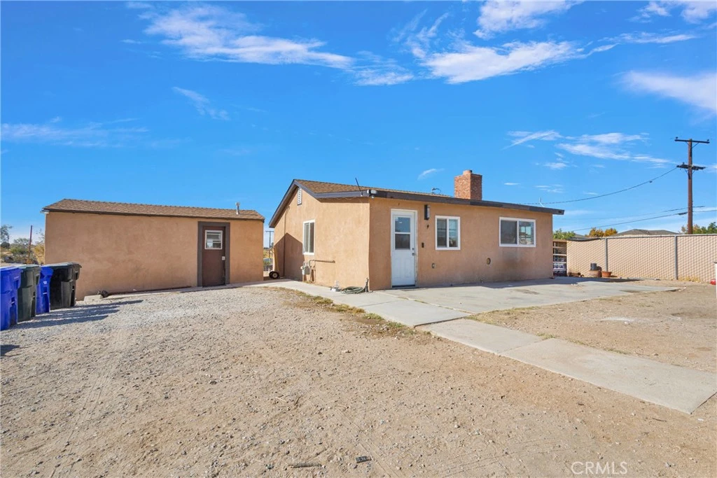 This 2 bedroom and 1 bathroom home is built on 3/4 of an acre. Beautiful fireplace located in the living room with built in firewood storage. There is a detached laundry room with plenty of storage space for a workshop. Recessed lighting and vinyl flooring, Wooden fence along the east side of the property for privacy. Chain link fencing all around. Motion sensing lights and a dog run outside the home. Home does need a little TLC. Conveniently located near the 15 freeway off of Palmdale Rd. Only 5 minutes away from Kaiser Hospital, Costco, gas stations, and more! This property has so much potential and is a must see!