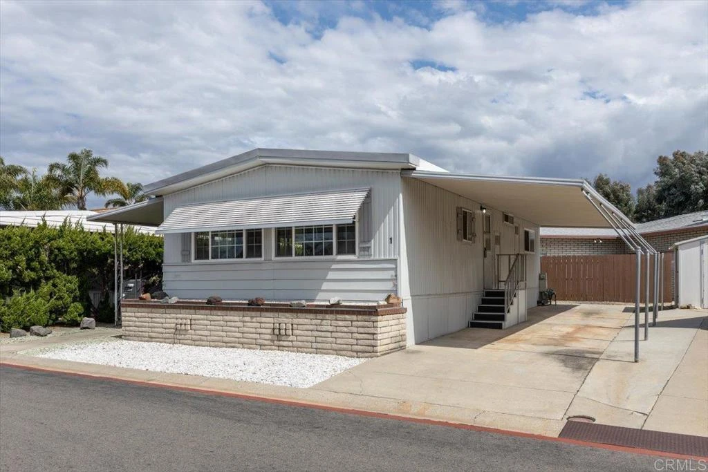 Very clean, 55+ resident owned community that shows pride of ownership! No monthly space rent since you own the land! The monthly HOA fee is $355 and includes trash, water, cable TV, and internet. This home is very convenient to most of the park amenities and guest parking; Amenities include a clubhouse, library, billiards, saltwater heated pool/spa, dog park, exercise room, laundry room, BBQ, social activities, office staff and property maintenance for common areas. RV parking available for an additional small fee on availability. This cute home has been upgraded with dual pane windows, updates to the Kitchen and Bathrooms, and a new 30 gallon water heater in 2020. Both bedrooms have walk in closets. The Main bedroom has a private exit to the large covered porch. Extra wide driveway and easy care yard. Very convenient location; Walking distance to Sprouts, Albertsons, Rite Aid, dining & shopping, near Downtown Vista; breweries, movie theater, transportation, Moonlight Amphitheater & a short drive to beaches! Ask Agent if you need a referral for a lender that can finance this property!