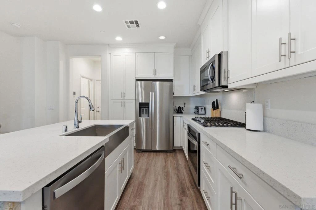 Stunning 3BR/2.5BA 2 modern townhome built in 2021 by D.R. Horton, ideally located just minutes from shopping, dining, and Cal. State University San Marcos. This move-in ready home features an open-concept floor plan with luxe vinyl plank flooring, stainless steel appliances, tankless water heater, and an oversized island with custom stacked stone detail. Upstairs loft offers flexible space for office, media room, or playroom. Private courtyard perfect for relaxing or entertaining. Oversized 2-car garage with extensive built-in storage. Racks, Gated community amenities include pool, clubhouse, tot lot, EV charging stations, and ample guest parking. TURNKEY and beautifully upgraded throughout! Stunning 3BR/2.5BA 2 modern townhome built in 2021 by D.R. Horton, ideally located just minutes from shopping, dining, and Cal. State University San Marcos. This move-in ready home features an open-concept floor plan with luxe vinyl plank flooring, stainless steel appliances, tankless water heater, and an oversized island with custom stacked stone detail. Upstairs loft offers flexible space for office, media room, or playroom. Private courtyard perfect for relaxing or entertaining. Oversized 2-car garage with extensive built-in storage. Racks, Gated community amenities include pool, clubhouse, tot lot, EV charging stations, and ample guest parking. TURNKEY and beautifully upgraded throughout!
