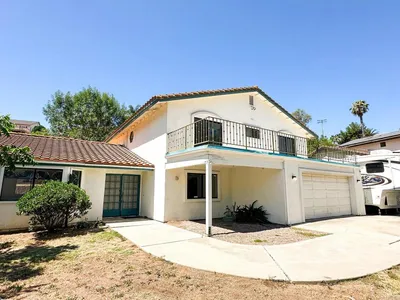 Welcome to this brand new custom Spanish estate, a unique property you might expect to find in Rancho Santa Fe, thoughtfully designed and handcrafted over four years by its owner to honor the romance and integrity of true Spanish architecture. Set on over an acre of Vista land and tucked into a small enclave of custom built homes, this single story residence offers privacy with no HOA and no Mello Roos, all while being less than a 10 minute drive to vibrant Downtown Vista, local dining, shops, and major highways for easy commuting throughout North County. As you approach the home, the classic Spanish tile roof, covered wraparound front patio, and handcrafted wood garage doors immediately set the tone. Upon entering, your gaze is drawn to a custom stained glass window at the entry, an artistic ode to Spanish nature that casts warmth and color as it frames the front door and welcomes you inside. The front door and arched interior doors were all handcrafted by the seller, further adding to the authenticity and architectural integrity of the home. Offering 3 bedrooms, 3.5 oversized bathrooms, and a spacious den, the flexible layout is designed for both everyday living and elevated entertaining, with the den easily serving as a game room, playroom, executive office, or even a fourth bedroom. Inside, soaring vaulted wood trimmed ceilings, rich warm wood posts, graceful arches, and Sausalito tile flooring create depth, texture, and architectural character throughout the home. At the heart of the estate, the chef’s kitchen is both striking and functional, featuring an 8 burner Viking range, built in side by side refrigerator, and a custom copper hood that anchors the space with warmth and craftsmanship. Custom cabinetry includes thoughtful pull out drawers for organization, while a large walk in pantry offers wall to wall storage and a dedicated appliance counter to keep everyday essentials tucked away. Aluminum clad French patio doors line the home, filling the interior with natural light and seamlessly blending indoor and outdoor living. A dramatic gallery hallway illuminated by statement chandeliers leads to thoughtfully curated spaces, including two statement fireplaces, one anchoring the main living area and another creating ambiance on the covered outdoor patio. A cozy oversized reading nook is perfectly positioned to capture glowing western sunsets, while one bedroom is thoughtfully split from the others, ideal for generational living or private guest quarters. The primary suite offers a true sanctuary with private patio access, custom bedroom cabinetry, an expansive custom walk in closet, and a spa inspired bathroom featuring a jetted soaking tub and oversized walk in shower adorned in Spanish tile. Even the everyday spaces were elevated, including a generous laundry room with ample storage and under cabinet lighting. Designed for year round comfort, the home features dual air conditioning systems, whole home surround sound, and a fully integrated security video system. An oversized three car garage with custom wood doors completes the property, while the expansive acreage offers room to build your own dream yard spaces, whether you envision a pool, garden retreat, sport court, or outdoor kitchen under the stars. This is more than a home. It is a labor of love, built with heart, heritage, and intention. Your next chapter begins right here at 2525 Date Palm Court in Vista.