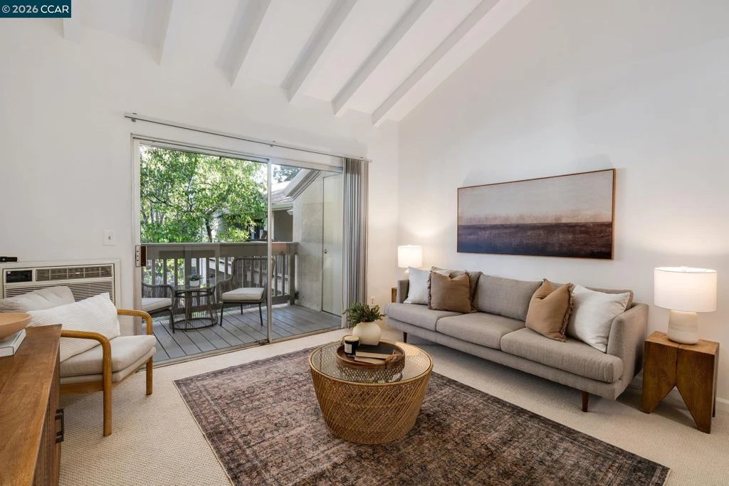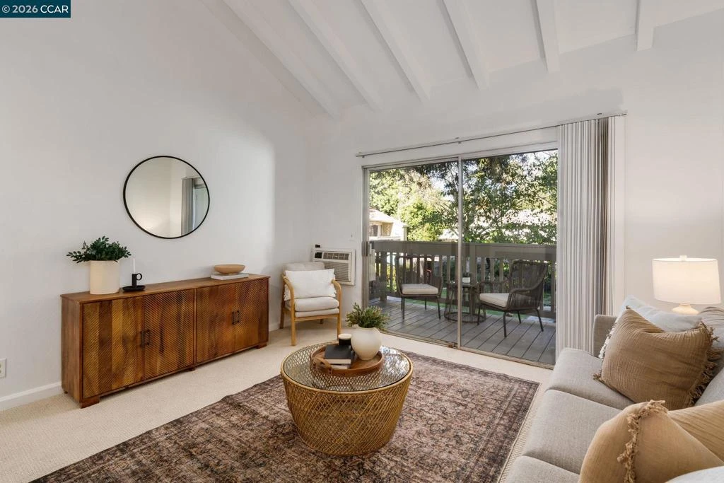 Location, location, location! Move-in ready upper-level condo in the desirable Walnut Park community. This light-filled home features soaring cathedral ceilings, a cozy gas fireplace, and a private deck overlooking the peaceful courtyard. The open living and dining area flows easily to the kitchen with a convenient pass-through and large pantry for extra storage. Brand new kitchen appliances, new flooring, new carpet, and fresh paint make this home truly move-in ready. The spacious 1-bedroom floor plan with full bath offers comfortable, low-maintenance living. Enjoy the community pool, abundant guest parking, and a convenient covered carport. Ideally located just minutes to downtown Walnut Creek, BART, shopping, dining, and parks—perfect for commuters and those seeking a walkable lifestyle. A fantastic opportunity for first-time buyers, investors, or downsizers.