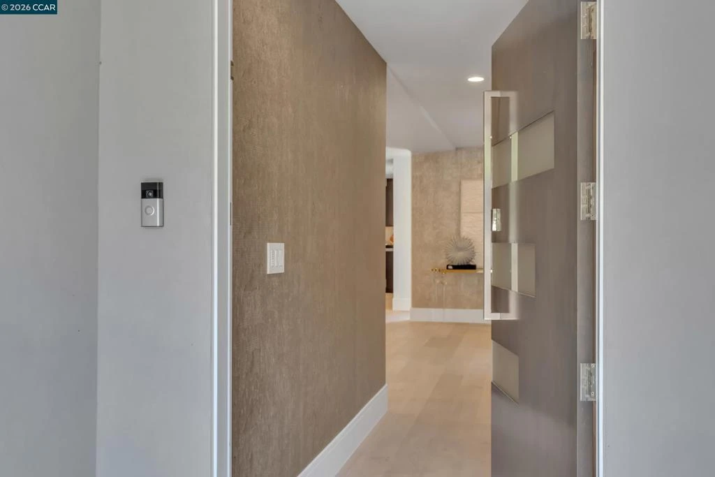 Welcome to 127 Caminar Way! A newly remodeled modern hillside retreat where striking architectural lines, expansive interiors and breathtaking views create an elevated lifestyle. Privately set on a secluded lot framed by mature oaks and magnolias, this refined contemporary estate showcases walls of glass, soaring ceilings and seamless indoor-outdoor flow. Every space is thoughtfully curated to maximize natural light, openness and sleek sophistication while capturing sweeping panoramic views of the surrounding hills and city skyline. A beautifully appointed 1-bedroom ADU with a private entrance offers exceptional flexibility — ideal for multi-generational living, extended guests, a private executive office or potential rental income. Inside the main residence, modern luxury defines the experience. The gourmet kitchen features custom cabinetry and premium Miele appliances, anchoring the open-concept layout. It flows effortlessly into expansive living and dining areas designed for both grand entertaining and everyday comfort. The dramatic great room includes a sleek kitchenette, gas fireplace and designer lighting, opening to a spacious deck with stunning city views. Outdoor highlights include a tranquil Zen-inspired garden with fire pit & a newly resurfaced pool w/ panoramic views. Views: Downtown