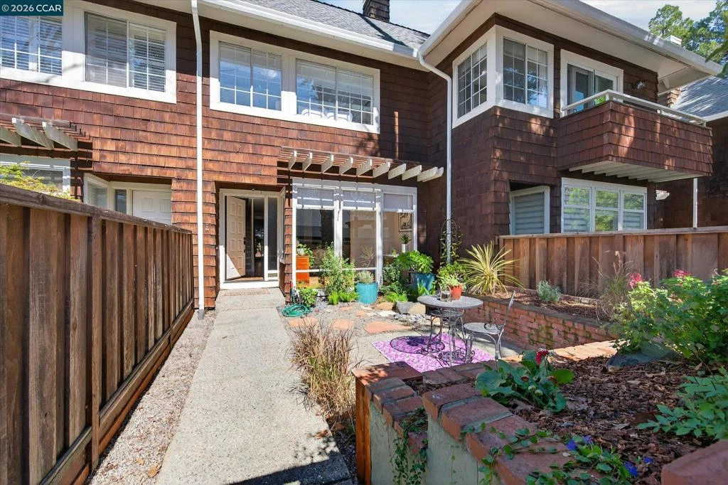 Tucked within an intimate 7-unit community this charming townhouse feels like a hidden retreat. A welcoming front patio sets the tone for relaxed living. Inside, the open layout offers both comfort and flexibility. The living room features a striking decorative stone wall, while the sun-filled office/sunroom creates the perfect space to work or unwind. The dining area with wet bar flows seamlessly into the kitchen, complete with stainless steel appliances and granite countertops, all overlooking the private backyard—an inviting setting for quiet mornings or evenings under the trees. Upstairs, two spacious ensuite bedrooms each offer skylit bathrooms, including one recently remodeled with a double vanity. Newer interior paint, newer carpet, attic storage, and a garage add everyday convenience, along with LOW HOA DUES. Feeds to highly-rated schools: Buena Vista Elementary, Walnut Creek Intermediate, & Las Lomas High School Just minutes from Walnut Creek BART Station and vibrant Walnut Creek downtown shopping and dining, this home offers a rare blend of privacy, charm, and close-to-everything convenience.