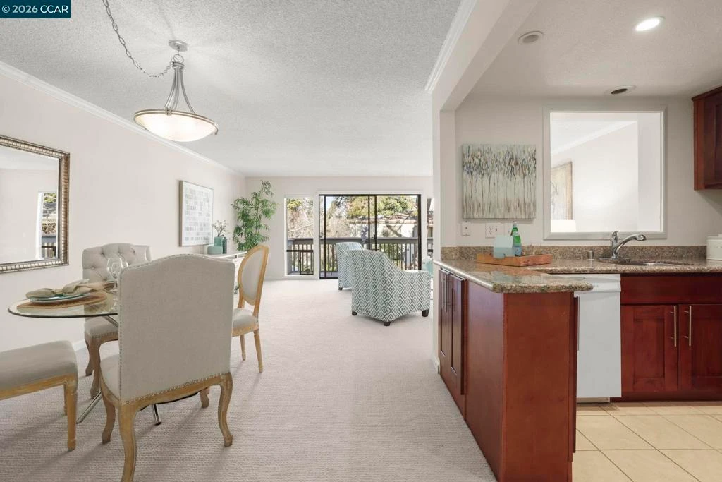 Desirable Piedmont townhouse with 3 FULL BEDROOMS in the award-winning Rossmoor 55+ community. This spacious end-unit offers over 1,700 square feet of living space with new carpet and fresh interior paint throughout. The updated kitchen features granite countertops, ample cabinetry, and functional workspace. Versatile floor plan includes a full bedroom and bathroom on the main level, ideal for guests or office use. The upper level offers an expansive primary suite with generous closet space and separation from the main living areas. Additional features include in-unit washer and dryer, close proximity to carport parking, and end-unit location providing added privacy and 3 skylights add loads of natural light. Enjoy all that Rossmoor has to offer including golf, swimming, fitness center, event center, clubhouses, dining, transportation, and extensive social and recreational activities. Carport 1213-1