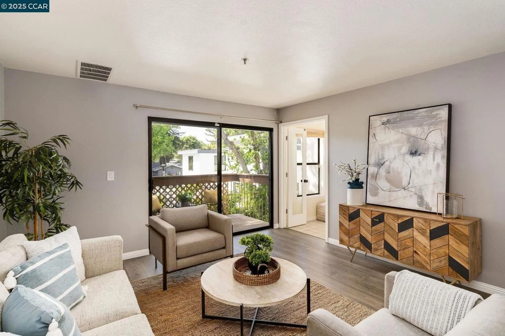 Discover comfort, functionality, and convenience in this beautifully updated condo in The Villas community. Featuring 2 bedrooms, 1.5 bathrooms, and a flexible bonus area off the primary suite—perfect for a home office, fitness space, or reading retreat—this home checks all the boxes for today’s lifestyle. Enjoy a spacious layout with laminate flooring throughout, fresh interior paint touch-ups, and a tankless water heater for added efficiency. The open-concept living and dining areas flow into the kitchen and out to a private deck with a peaceful backdrop—nestled at the edge of the community with no shared common-area views. The primary suite includes dual closets and direct access to the bonus room, while the second bedroom is positioned near the updated half bath—ideal for guests or shared use. Additional features include in-unit laundry, an assigned covered parking space, and access to resort-style amenities such as a pool, spa, and clubhouse. HOA fees include trash and water. Convenient elevator access in the building. Located just minutes from Walnut Creek’s vibrant downtown, BART and freeways, with quick access to top-rated schools including Las Lomas High School, this home delivers the best of suburban living with urban convenience.