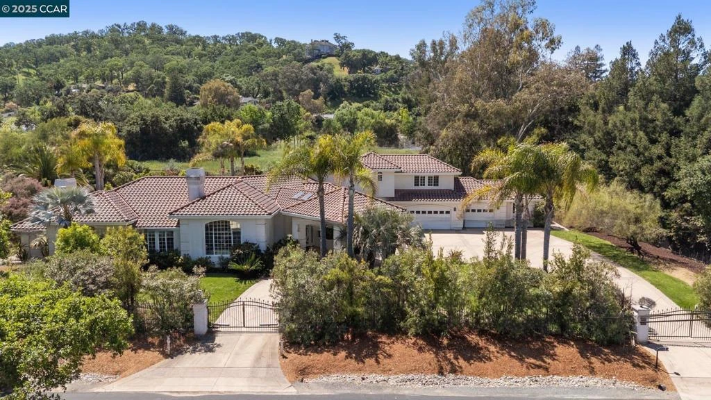 Experience elevated California country living in this custom, private one-acre estate tucked along a bucolic lane near the Mt. Diablo foothills—just minutes from top-rated schools, upscale shopping, and dining. This spacious 4 BD, 3.5 BA residence offers generous living and entertaining spaces with soaring ceilings and views of serene gardens. Highlights include a luxurious downstairs primary suite with sitting area, chef’s kitchen with walk-in pantry, dedicated office, upstairs library/game room, multiple fireplaces, and a garage workshop. Outdoors, enjoy a sparkling pool, covered loggia, and lush Mediterranean gardens with mature palms, drought-tolerant blooms, citrus and fruit trees, and heritage walnuts. The flat lot offers excellent potential for an ADU, expansion, vineyard, or even horses. Listing agent is related to seller. Full virtual tour and more at: 195pinecreek.com/mls/184585851