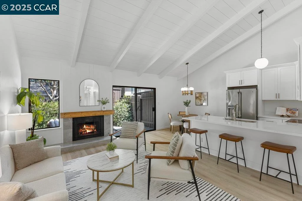 Beautifully Renovated Townhome in Prime Walnut Creek Location This extensively renovated, single-story, end-unit townhome blends contemporary design with everyday comfort in one of Walnut Creek’s most desirable neighborhoods. The light-filled interior features soaring vaulted ceilings, new flooring, and new paint throughout. The kitchen has been completely reimagined with updated finishes, while the spa-like bathroom offers a calming retreat. A custom fireplace surround anchors the stylish living area, and the in-unit laundry, dedicated covered parking space, and extra storage in the private yard add layers of convenience. Enjoy indoor-outdoor living with a private, enclosed patio that feels like a personal oasis—perfect for morning coffee. The home is set in a peaceful, greenbelt-lined enclave that includes access to a community pool and clubhouse. Right across the street, the Iron Horse Trail invites daily strolls, bike rides, and a deep connection to the natural beauty of the area. This location also offers easy access to downtown Walnut Creek’s shopping, dining, and entertainment, plus quick freeway access. Zoned for top-rated schools. Ask about the amazing mortgage rate buy down available for this property!