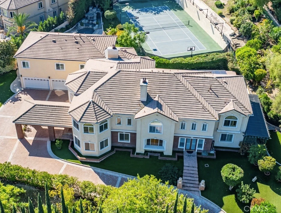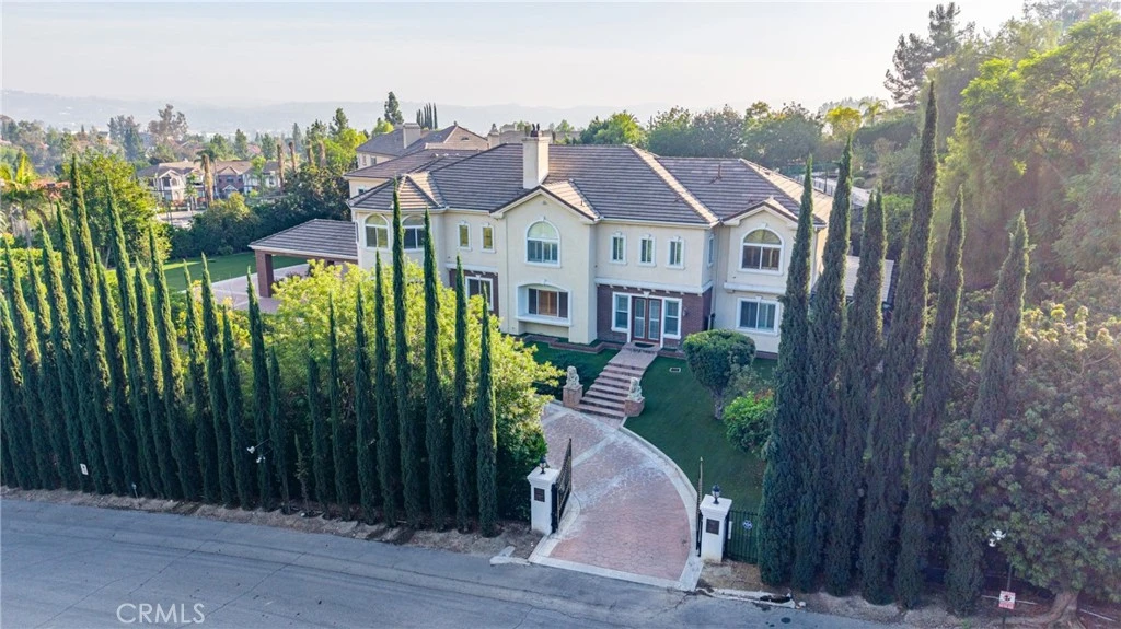 Welcome to a world of timeless elegance and refined sophistication. Tucked away in the prestigious Emerald Hills Estate community of Walnut, this magnificent custom-built mansion is a true architectural gem—designed for those who demand the very best in craftsmanship, privacy, and comfort. A grand private gate and long sweeping driveway set the stage for this stately residence, offering over 9,094 square feet of opulent living space surrounded by other multi-million-dollar custom estates. Grand Interiors. Step through the double doors into an impressive foyer crowned with a dazzling crystal chandelier and soaring ceilings that immediately evoke a sense of grandeur. The formal living room exudes warmth and elegance with its cathedral ceiling and fireplace, while the formal dining room provides an exquisite setting for hosting lavish gatherings. The gourmet kitchen is a culinary showpiece, featuring granite countertops, a center island, and stainless-steel appliances—perfectly balancing beauty and functionality. A spacious family room with a custom wet bar offers the ideal backdrop for relaxed entertaining. The mansion boasts total 8 bedrooms and 9 bathrooms, including six expansive bedroom suites, and two suites on the main level—ideal for guests or multi-generational living. The primary suite defines indulgence, featuring a private sitting area, walk-in closet, romantic fireplace, and a spa-inspired bath retreat that rivals a five-star resort. Entertainment & Relaxation. Every detail has been crafted for a lifestyle of leisure and sophistication. The resort-style backyard is a true sanctuary—complete with a sparkling pool and spa, waterfall feature, full-size tennis court with lighted, outdoor BBQ pavilion, gazebo, and a tranquil Chinese-style garden surrounded by fruit trees and lush landscaping. Exceptional Features • Private elevator to all levels • Four-zone central air and heating system • Four-car garage with EV charging prewire • Water softener system • Sauna • Central vacuum and advanced security system • Professionally designed landscaping throughout. Set on a private and quiet cul-de-sac within the award-winning Walnut Valley Unified School District, this extraordinary residence offers both prestige and convenience—just minutes from fine dining, shopping, and major freeways. A rare opportunity to own one of Walnut's most distinguished estates.