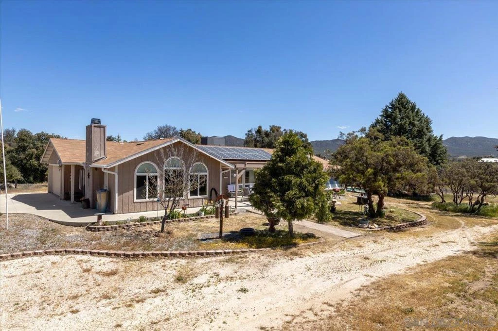 Look no further! Welcome to your Warner Springs retreat! Enjoy a bounty of amenities in the privacy of your gated 10 acre estate. Start with the option of three gated entrances to access your 10 level acres. Mature Oak trees provide shade throughout the property. A 360 foot deep well provides an abundance of water. Two RV hookups are ideally located near the 30’x24’ garage barn and among a shaded grove. Looking for additional storage? Next to the garage barn is a full-size shipping container! See supplement... A generous sized chicken coop keeps you well stocked in eggs. Several seasonal raised garden beds are adjacent to the chicken coop. Cool off in your very own sparking pool complete with newly replaced solar panels. The owned 280 gallon propane tank serves the house year around. The residential solar system is owned and provides energy to cover 100% of the demand. There is a separate meter for the well pump and that is consistently $30/mo. The single-level home has an attached 2 car garage plus a large concrete driveway. The floor plan takes advantage of the natural light and there is an abundance of storage throughout. The large living room features a vaulted ceiling and a fireplace. The utility room hosts the new tankless hot water heater and the laundry hookups are both electric and propane. The hall bathroom has a solatube providing additional light throughout the day. The south facing patio is an ideal location to relax and enjoy the serene, natural beauty of your property.