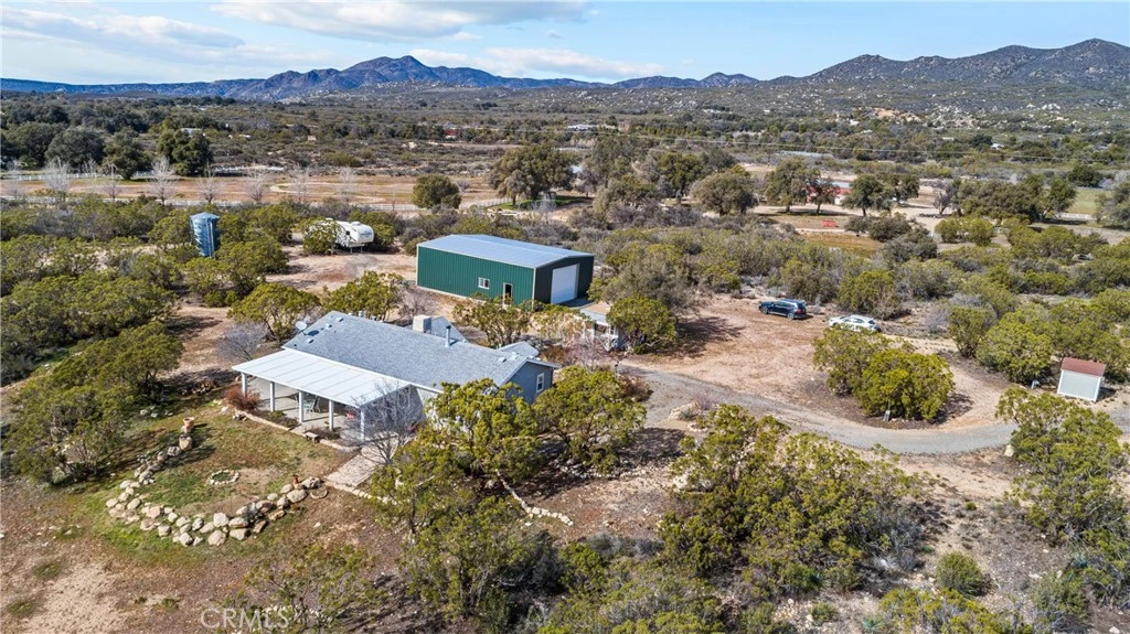 Light, bright, and incredibly clean and stylish on over 7 acres in Chihuahua Valley, Warner Springs, San Diego County. Gorgeous views over large open space of oaks, pasture, and off to distant Hot Springs Mountain and Palomar. Home is recently improved with a hardy, nearly half inch thick wood floor, wood-burning airtight stove for taking the chill off a winter night, new appliances, and of course --- THE SHOP. The workshop is 36x48 or 3024 esf of insulated, 14' high walls, drive-in - drive-out doors, and space for at LEAST 4 full-sized vehicles, even with the workbench and storage. 10,000-gallon water storage tank and excellent, sweet water well. Fenced and gated on 3 sides. Safe, secure, and seriously tidy property throughout. You will be challenged to find a more turnkey, spacious, and enjoyable property.
