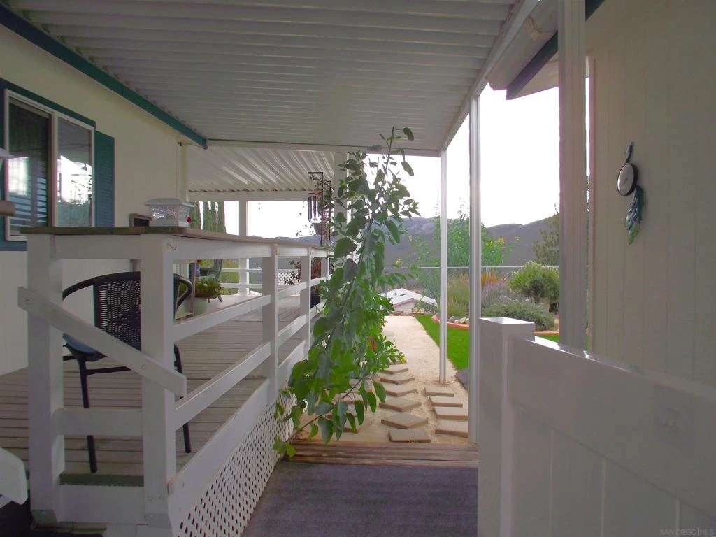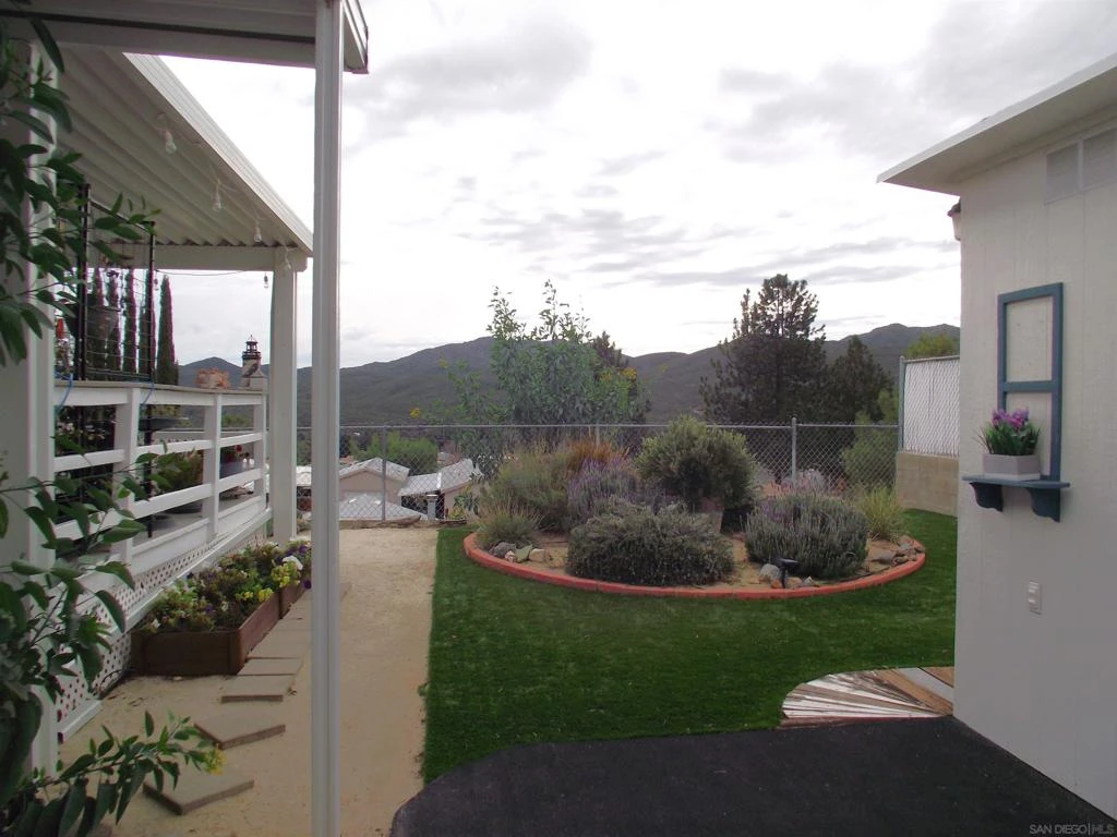 HIGHLY DESIRABLE WITH BEAUTIFUL VIEWS SUNRISE TO SUNSET FROM A SPACIOUS COVERED DECK. DISCOVER THIS COZY PROPERTY IN A 55+, LAND OWNED, RETIREMENT COMMUNITY. STONE RIDGE is nestled in the high desert area of NE San Diego County near several boutique wineries and a popular Glider Airport. This move-in-ready home offers comfy living, with unique details in the fully remodeled Kitchen, featuring ample storage with new white cabinets, a generous pantry, large island, farmhouse sink, a hanging rack for crystal stemware, and a soft-close "hidden trash drawer". New appliances include a 5-burner gas range, 3-door counter-depth refrigerator, and wine cooler, as well as a washer & dryer in the separate laundry room. Additionally, find new laminate flooring, with plush carpeting in the bedrooms. Also there are new window coverings and ceiling fans/lights. The water heater was replaced in 2022, and a new roof and A/C were installed in 2023. Enjoy a fully fenced yard with nice garden areas, and a sprinkler system covering front and rear yards. Find plenty of space for growing herbs, veggies, and fruit trees. Tomatoes & strawberries seem to especially love it here. There is a nice garden shed/workshop/storage room separate from the oversized, 1-car garage. Also, a concrete patio is perfect for a hot-tub & enjoying the clear star filled nights...away from city lights. This community is pet friendly, with hiking & walking trails nearby, where you will pass friendly neighbors walking their dogs.