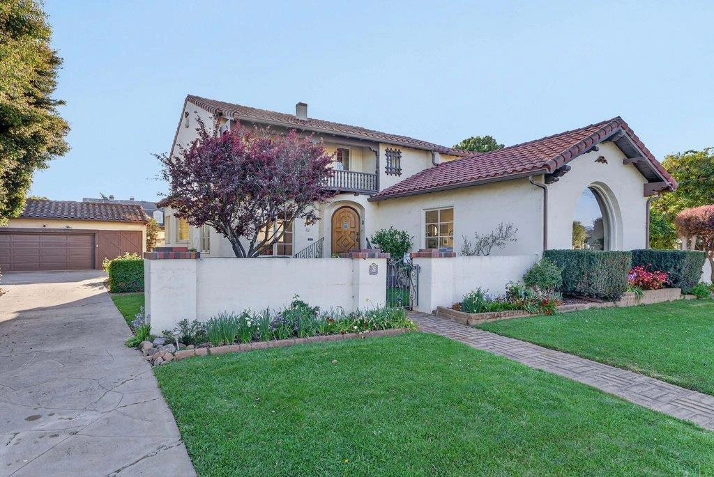 Step into timeless charm with this classic 1932 Watsonville home offering over 3,000 sq ft of spacious living. This 4-bedroom residence features a flexible floor plan with a convenient downstairs en suite bedroom, perfect for guests or multi-generational living. Upstairs you'll find three additional bedrooms and a full bath, while the main level includes a half bath for added convenience. The home showcases a blend of hardwood floors, tile, and carpet, creating warmth and character throughout. A cozy wood-burning fireplace anchors the living space, ideal for relaxing evenings. The remodeled kitchen features tile flooring and countertops, along with an oversized pantry that provides abundant storage. Additional highlights include a dedicated office space and a functional service porch, adding versatility to daily living. Step outside to a large backyard designed for entertaining, gardening, or simply enjoying the outdoors .A rare opportunity to own a spacious, character-filled home with classic details and modern updates in a desirable Watsonville location. Mature landscaping, generous room sizes, and abundant natural light enhance the homes inviting atmosphere, making it perfect for both everyday living and hosting gatherings.