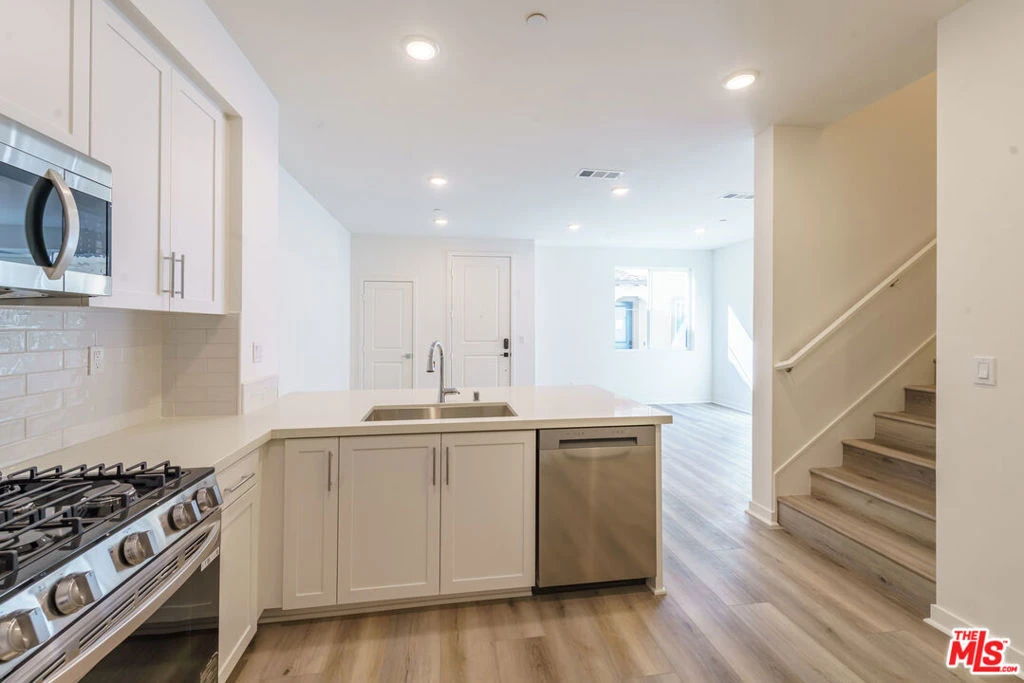 This home is priced to sell and you don't want to miss this 2-story move-in ready home with upgraded flooring throughout, a finished front space, and a generous common area for your pets. The Grove in West Covina offers a rare alternative to today's multi-level new construction. With fewer stairs and a highly functional layout, the home is designed for comfortable, practical living. The main level features an open layout connecting the kitchen, dining, and living areas, creating a natural flow for daily living and entertaining. The kitchen is finished with white shaker-style cabinetry, quartz countertops, a full tile backsplash, and gas appliances, delivering a clean and timeless aesthetic. Upstairs, the primary bedroom includes an ensuite bathroom and generous closet space. Two additional bedrooms provide flexibility for guests, home office use, or flexible space. This home features upgraded flooring throughout, no carpet anywhere! Unlike many new construction communities in the area, this home is part of a neighborhood without Mello-Roos, providing long-term value. Conveniently located near shopping, dining, and major commuter routes, The Grove presents a unique opportunity to own a completed new construction home in West Covina.