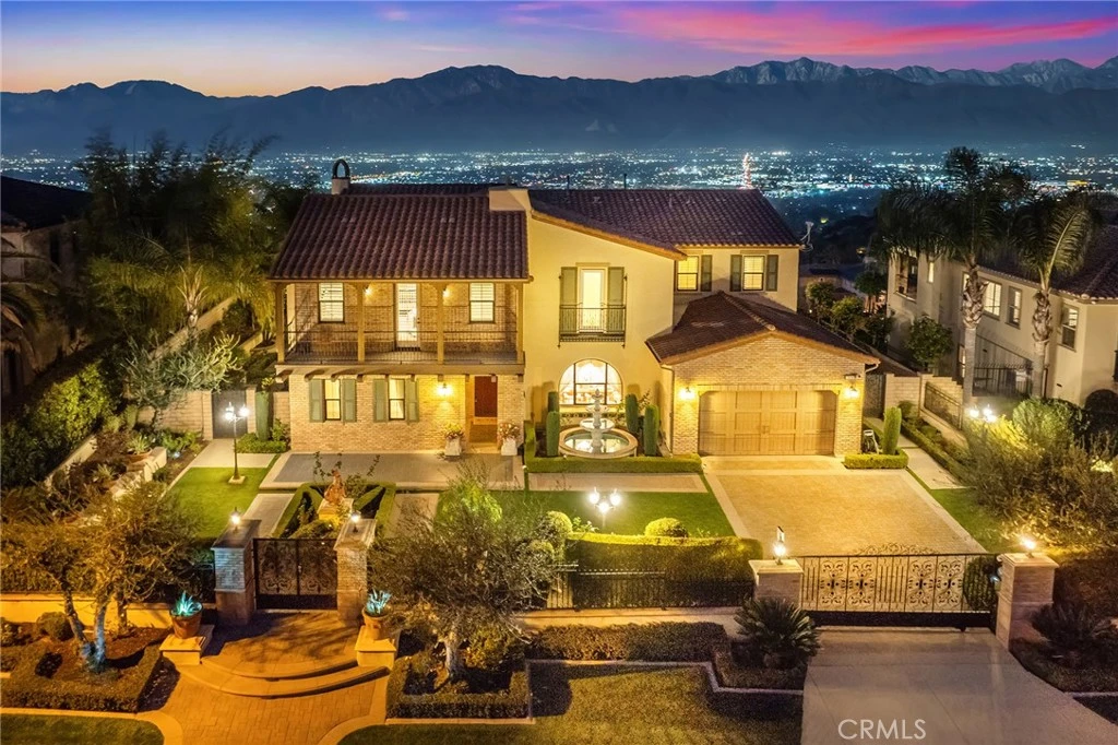 Stunning View Home in South Hills Estates – On the Market for the First Time!! This beautifully appointed, south-facing luxurious custom home is nestled on one of the most breathtaking city-view lots in prestigious South Hills Estates. Enjoy spectacular panoramic views of the San Gabriel Valley mountains and sparkling city lights from nearly most rooms. Extensively upgraded inside and out, this magnificent estate offers ultimate privacy with its own private automatic gate. Once inside, a landscape welcomes you to an expansive front porch featuring a charming fountain. Step into a entryway that opens to a soaring high-ceiling foyer and an elegant formal dining room. The spacious family room, complete with a cozy fireplace, A high stacking glass door connects the living space to a California room and a picture-perfect rear garden with 180-degree city views — complete with a mini golf area! There’s also a private deck off the Master Suite to fully enjoy the stunning vistas. The main-level Master Suite features a private retreat, dual sinks, and a convenient stacked washer/dryer. The home boasts 12-foot ceilings on the first floor and 9-foot ceilings upstairs. The gourmet kitchen features a large center island, and the countertops are custom-made with upgraded thickness, offering a more solid and textured feel compared to standard countertops, oversized walk-in pantry and complete with a custom full backsplash. Top-of-the-line Bosch stainless steel appliances, double oven, 5-burner cooktop, custom vent hood, and an 80” built-in Thermador refrigerator elevate this chef’s dream kitchen. Raised-panel custom cabinetry. A spacious breakfast nook opens to the great room, allowing you to take in panoramic mountain views while cooking or dining. Additional Luxury Features: • Crown molding • Upgraded wood flooring and premium carpet • Wood-frame windows • California Room with fireplace • 3-car tandem garage • Two powder rooms (main level and second floor) This exceptional residence offers five en-suite bedrooms, including two primary suites. Upstairs, discover three additional en-suites, one of which is a spectacular master suite with a large balcony that overlooks the shimmering cityscape. A generous loft on the second floor offers a versatile space that can serve as a sixth bedroom, home office, or entertainment area. NO HOA! Come visit us today and experience one of the finest locations with true panoramic views in South Hills Estates!