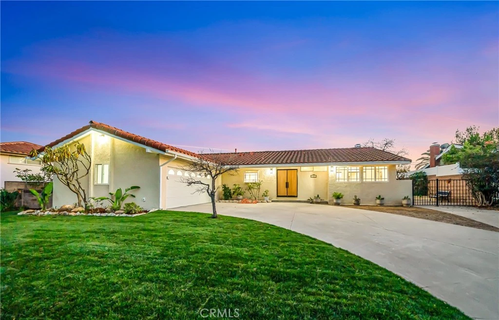 Turnkey, brand-new, fully remodeled single-story home, with the required permits and FINAL, West Hills home offering 4 bedrooms, 3 designer bathrooms, including two primary suites, and breathtaking panoramic hillside and valley views. This move-in-ready residence blends modern design with an elevated setting, providing privacy, natural light, and an open outlook. A gated front entry leads to an oversized driveway and finished two-car garage with epoxy floors and recessed lighting. Inside, wide-plank wood floors, vaulted ceilings with exposed beams, recessed lighting, and a bright neutral palette create a clean, modern feel. Expansive picture windows flood the living areas with natural light while showcasing the views. The chef’s kitchen features custom white shaker cabinetry, quartz countertops with full backsplash, stainless steel appliances, gas range, farmhouse sink, and a large center island, with a dedicated laundry area and built-in cabinetry nearby. Both primary suites serve as private retreats with generous space, abundant light, and spa-inspired en-suite bathrooms featuring floating wood vanities, quartz counters, soaking tub, frameless glass, and refined tilework. Secondary bedrooms are spacious and bright, with additional bathrooms continuing the cohesive modern design. The view-oriented backyard offers new fencing, manicured lawn, space for entertaining or relaxing, and mature fruit trees including fig, grape, and persimmon (Sharon fruit). Additional highlights include new windows and doors, updated electrical, plumbing, and HVAC, modern fixtures, new interior doors and hardware, and a gated entry. Ideally located near parks, schools, shopping, and dining, this exceptional single-story home delivers spectacular views and true move-in-ready living. Virtually staged.