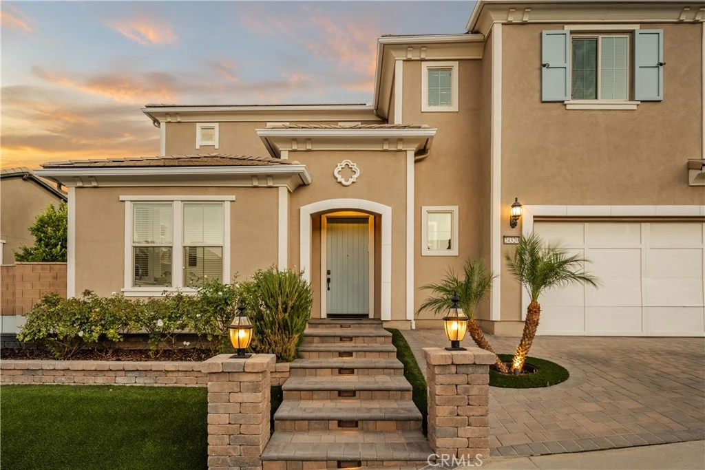Welcome to this exquisite custom estate in the prestigious Sterling Ranch community of West Hills. Set on a quiet street, this modern masterpiece offers over 4,000 sq ft of refined living space with 5 bedrooms and 5.5 bathrooms on an expansive 11,006 sq ft lot. Designed for effortless California living, the open-concept floor plan features soaring ceilings, sleek porcelain tile floors, and walls of glass that flood the interiors with natural light. The spacious family room centers around a striking fireplace and pocket sliders that open to the backyard, creating a seamless indoor-outdoor flow. The gourmet kitchen is a showstopper, complete with porcelain countertops, premium KitchenAid appliances, a peninsula island with seating, a walk-in pantry, and an adjoining wet bar and dining area perfect for entertaining. A formal dining room adds elegance for special occasions. An attached ADU (or two-bedroom suite) with a private bath offers versatility for guests, family, or a home office. Upstairs, four en-suite bedrooms include a bright loft for lounging or work. The luxurious primary suite features dual walk-in closets, a vanity area, and a spa-inspired bathroom with dual vanities, a soaking tub, two showers, and private water closets. Step outside to your own resort-style oasis featuring a covered patio, Pebble Tec zero-edge pool and spa, built-in BBQ, pizza oven, and refrigerator—surrounded by lush landscaping and evening lighting for perfect ambiance. Conveniently located near top-rated schools, scenic hiking trails, and premier shopping and dining at The Village, Calabasas Commons, and the Fallbrook Center, with easy freeway access to Malibu’s beaches and Warner Center.