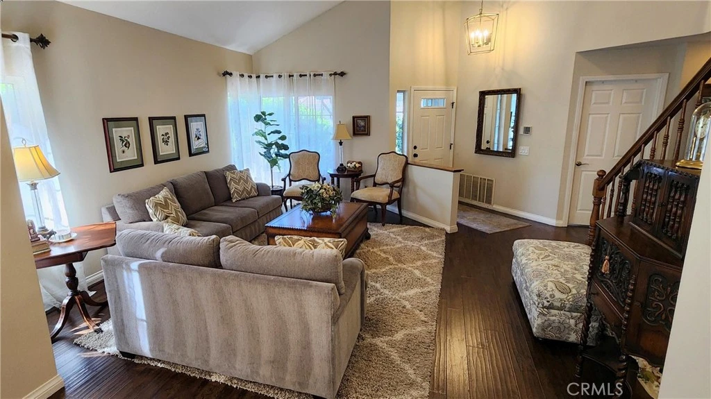 Welcome to this beautiful and immaculate two story show home in a quiet, desirable West Hills neighborhood! Fabulous curb appeal and a charming, brick walkway invite you into a spacious and comfortable environment. Most of the first level is adorned by rich, dark wood flooring. Vaulted ceilings add space and drama to the living and formal dining rooms. The full featured kitchen boasts quartz counters, ample cabinets, a garden window, and a cozy breakfast area. Relax and enjoy the generous sized family room complete with a fireplace and an oak built-in wall unit. A downstairs office can be the fourth bedroom and is adjacent to a remodeled bathroom with elegant tile work on the floors and in the shower. Upstairs, you’ll find the bright and roomy primary bedroom with vaulted ceilings and a large walk-in closet. The upgraded primary en suite bathroom also features vaulted ceilings as well as double vanities and gorgeous tile floors. Two additional bedrooms and a full bathroom complete the functional and efficient floor plan. The rear yard includes an enormous brick patio area, planters for your inner gardener and additional grassy areas. There is excellent storage for cars and more in the three car garage. Additional features include multiple ceiling fans, a tankless water heater and a water softening system. This home is the best combination of style, charm and function in a neighborhood that feels like home!