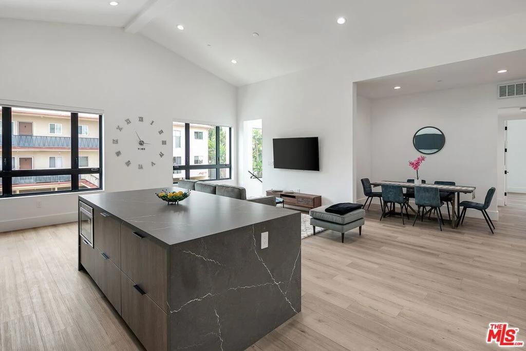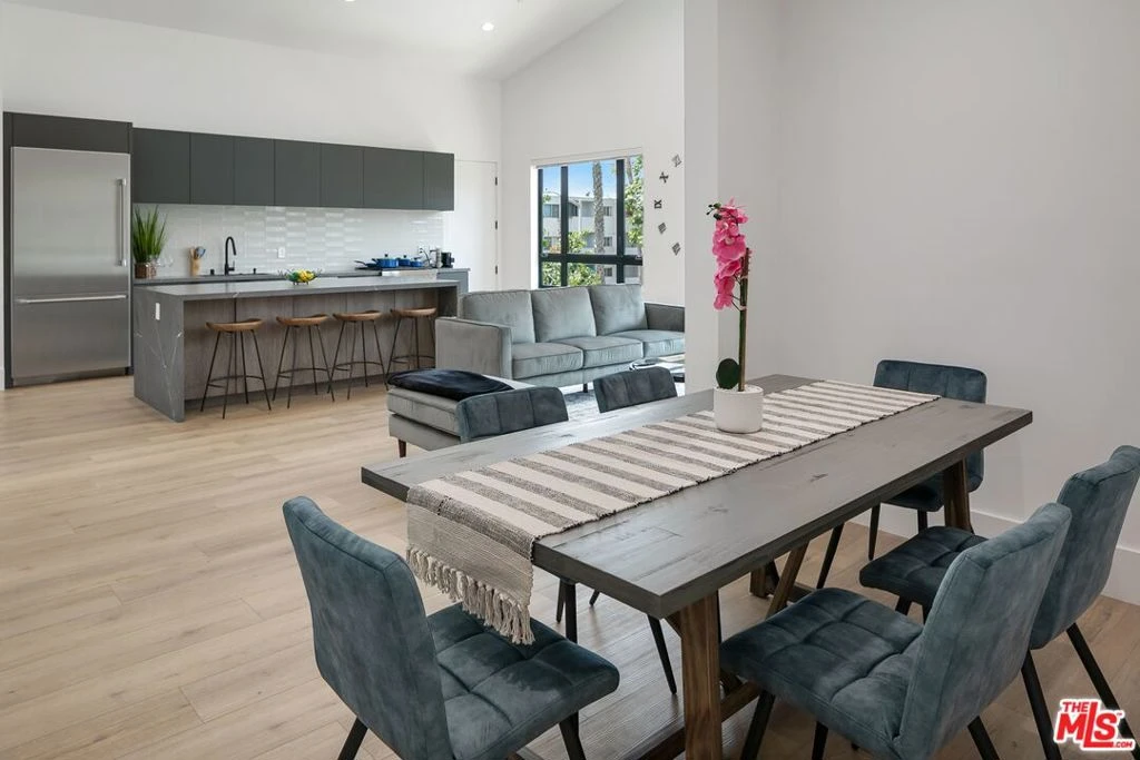 Enjoy a newly-constructed and modern townhouse in a central West Hollywood location. Walk through the front door and head up the stairs to the living space. Relax on the couch and put your drink down on the coffee table all watch your favorite streaming services and local channels on the flat-screened Smart TV. Cook a meal in the large kitchen with brand-new stainless-steel Thermidor appliances. Enjoy your food at the gorgeous kitchen island with bar stool seating for 4, or gather in the dining area with a dining table and seating for 6. Down the hallway you will find the Master suite with a King bed, spacious walk-in closet, Smart TV, and private balcony with lounge furniture. The attached Master bathroom offers dual sinks and a shower. To the right of the kitchen, you will find the second bedroom with a King bed, sliding closet doors, and attached bathroom with a sink and standing shower. Both bedrooms offer room-darkening shades to provide the best comfort and sleep possible. Head up an additional flight of stairs for shared rooftop access and the best Hollywood views. The unit offers garage parking for 2 vehicles and a washer and dryer. Recessed lighting and hardwood flooring through the home. Price above is for a one year furnished lease.