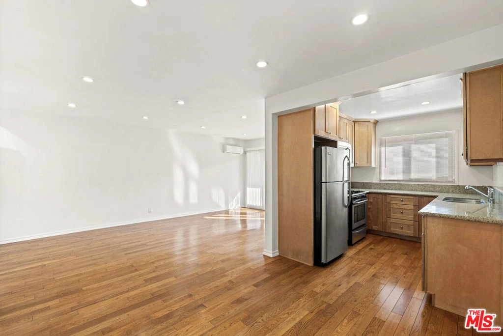 Large remodeled one bedroom / one bathroom unit with hardwood floors, ample storage space, chef's kitchen, granite countertops, stainless steel appliances (gas stove, dishwasher, refrigerator, microwave), marble bathroom with walk-in shower, recessed dimmable lighting, ductless air conditioning and a balcony. Wall-to-wall bedroom closet. One dedicated covered parking space. Shared laundry in building. Cat and/or small dog okay. Situated south of Sunset Blvd - south of Sunset Blvd. within close proximity to renowned dining, fashion, design, cafes, entertainment and much more.