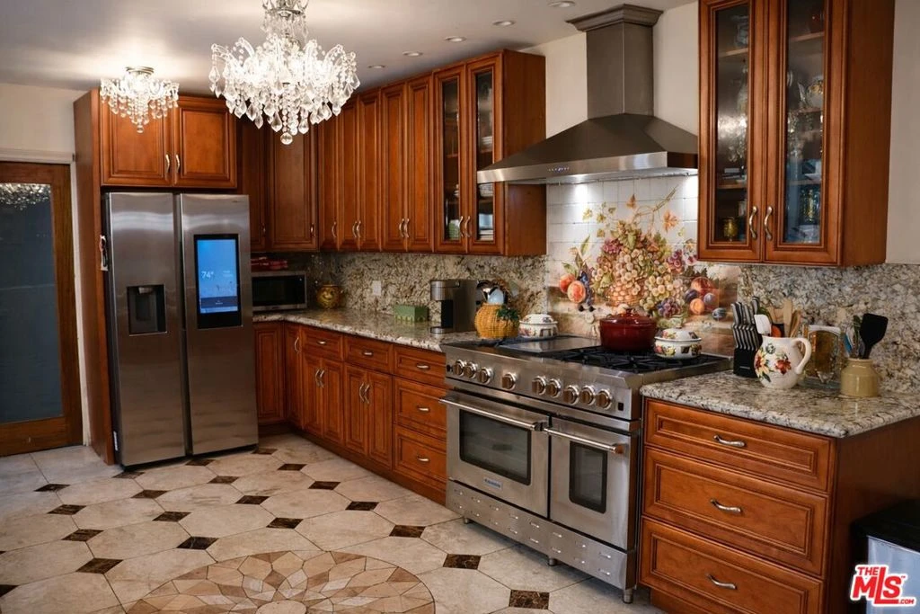 Nestled behind private gates and surrounded by lush landscaping, this updated Spanish blends classic 1920s character with contemporary luxury. The home offers expansive indoor and outdoor living spaces, perfect for entertaining or enjoying quiet privacy. A serene front courtyard welcomes you, leading to the main residence where period details like 12-foot barrel ceilings and a grand fireplace seamlessly pair with modern updates, including marble floors and a gourmet kitchen complete with new counters and top-of-the-line appliances. Main house has two primary suites with bathrooms, one of which includes a steam shower & spa tub. (One of the suites offers a separate entrance and can be used as an independent space with a kitchenette). Bathrooms and windows are updated. Central heating and air w/ 4 control zones. In the back of the property, down a charming bougainvillea-lined path to a private patio & BBQ area is a fully remodeled one bedroom guest house. This beautiful property has boundless options and is located only minutes from the heart of the famous Sunset Strip.