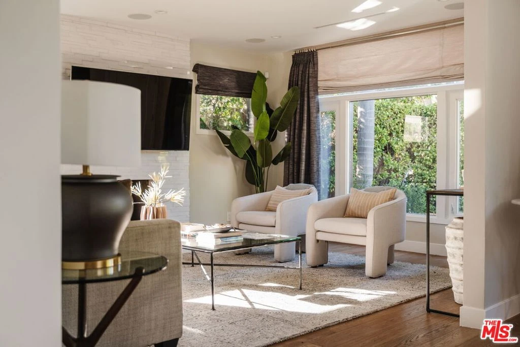 Set along a quiet, tree-lined street in a sought-after pocket of West Hollywood, this fully gated Spanish Revival has been thoughtfully reimagined through a comprehensive renovation completed between 2020 and 2024. A newly added second level and meticulous modernization of the main residence, guest house, and surrounding grounds bring contemporary ease to the home's enduring architectural character. A hedged front garden creates a graceful approach, opening to interiors defined by warm wood floors, generous natural light, and a calm, cohesive palette. The living spaces unfold with quiet refinement -- from the inviting living room to a sunlit dining area and a beautifully appointed kitchen designed for both everyday living and effortless entertaining. Caesarstone surfaces, Sub-Zero and Wolf appliances, and abundant pantry storage anchor the space with understated sophistication. Advanced home tech is seamlessly integrated throughout, including Sonos surround sound, Lutron lighting, smart climate control, dual tankless water heaters, automated pedestrian and driveway gates, and a security system with perimeter cameras. The main residence offers three en-suite bedrooms, including a serene primary suite on the main level. Here, sliding doors open directly to the garden, while a custom walk-in closet and spa-inspired bath -- featuring a glass-enclosed rain shower and dual floating vanity -- create a tranquil retreat. Designed with Southern California living in mind, the backyard unfolds as a series of intimate outdoor moments. Two custom pergolas frame areas for dining and lounging, while a turf lawn and tall privacy fencing create a secluded setting for entertaining. A fully renovated detached guest house -- with its own designer kitchen, living space, bedroom, and full bath -- offers flexibility for extended stays, a creative workspace, or potential rental income. Moments from the energy of West Hollywood's entertainment corridor and world-class dining and shopping along Beverly Boulevard and Melrose Avenue, the home offers a rare balance of architectural presence and quiet residential charm in the heart of the city.
