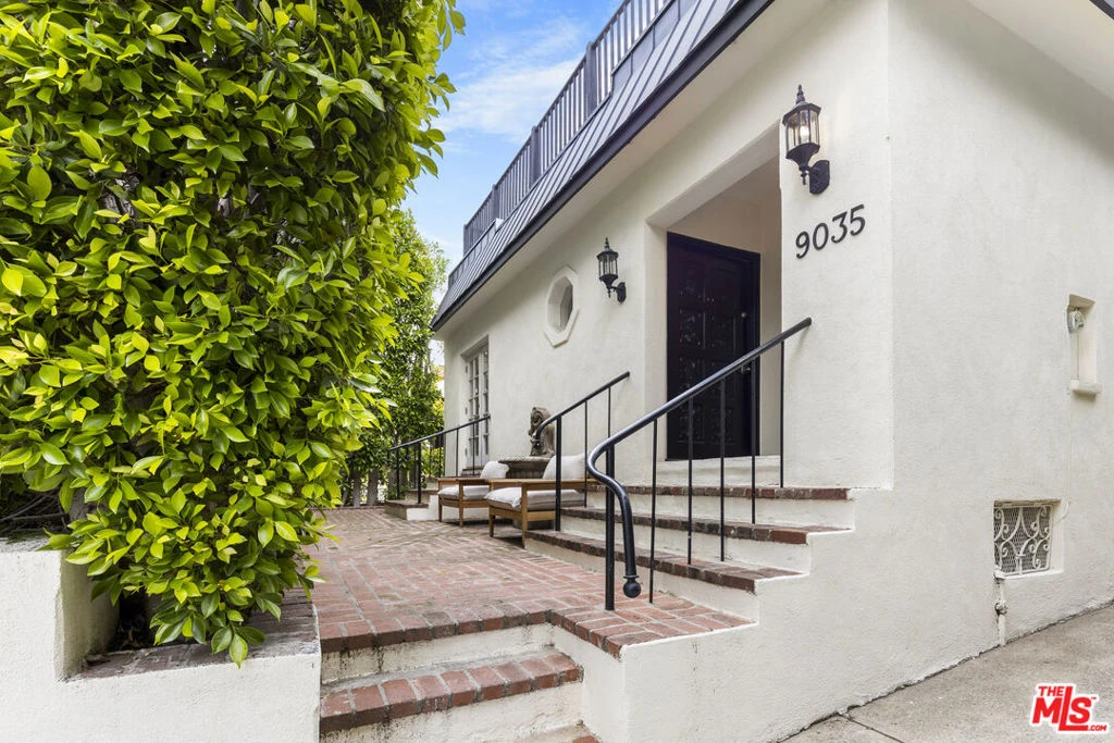 Tucked away in the heart of the coveted Norma Triangle, this enchanting Hollywood Regency home blends timeless elegance with the relaxed charm of modern Los Angeles living. Set behind lush, mature hedges for ultimate privacy, this rare gem offers a peaceful retreat just moments from West Hollywood's most exciting destinations.Step inside to a gracious foyer that flows into an inviting main living room, where a cozy fireplace sets the tone for comfort and relaxation. Perfect for both entertaining and quiet nights in, the space opens to a formal dining room, ideal for intimate dinners and celebrations alike. Nearby, a stylish bar area leads to a versatile library or secondary lounge, complete with custom built-ins and French doors that open to a tranquil, sun-drenched courtyard. The well-appointed kitchen is both functional and elegant, featuring stainless steel appliances, ample cabinetry, and timeless finishes. A spacious bonus room currently functions as a game room but could easily transform into a home gym, office, or screening room. A powder room completes the main level. The primary suite is a luxurious main-level retreat with French doors opening to a serene garden space. The spa-like en-suite bathroom offers dual vanities, a soaking tub, a frameless glass shower, and a walk-in closet designed for both comfort and style. Upstairs, two generous bedrooms share a beautifully finished full bath. Glass sliders open onto a spectacular rooftop deck, rare for the area, spanning over 1,000 sq. ft. and offering multiple spaces for lounging, dining, and entertaining under the stars with treetop and city views as your backdrop. Located just steps from the city's most iconic dining, nightlife, and cultural destinations including San Vicente Bungalows, Bird Streets Club, and Beverly Hills this home delivers a rare combination of privacy, style, and location. 9035 Lloyd Place is more than just a home, it's a lifestyle.