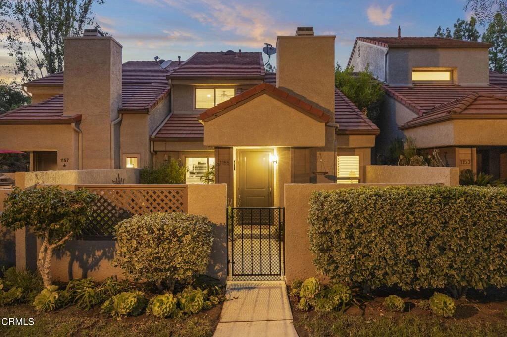 Welcome to the home you've been looking for. This 3 bedroom and 2 1/2 bath Hidden Canyon gem boasts an enviable private location with a breathtaking canyon view and the largest floorplan in the community. Once you enter through the private brick bordered front patio, complete with low maintenance landscaping, you'll be instantly welcomed into the large living area, with a cozy fireplace and mantle, warm rich wood flooring, and expansive ceilings. An adjacent space, currently used for media, is a perfect spot for an office or lounge area.The easy flow continues into the kitchen with an expansive amount of cabinetry, custom granite counters with tile backsplash, an oversized sink, and stainless appliances. The bar counter area offers an additional space to entertain while cooking. A large dining room offers opportunity for fantastic meals and conversations, with inviting overhead lighting. Next to the kitchen and dining room, you'll find a second private atrium patio with warm Saltillo tiles, making this a creative space for various opportunities such as reading, relaxing, or dining al fresco. Downstairs, the powder bath has been remodeled with a modern custom vanity and sink, as well as extra storage. As you make your way up the stairs, the second floor of the home offers plush new carpet and baseboards, and fresh paint throughout. The primary suite affords a comfortable space with two closets, mountain views and a ceiling fan. Additionally, the room flows seamlessly into a primary bath sanctuary, which has been remodeled with a warm wood vanity, LED lighted mirror, tile floors, and a large custom tiled shower. The hallway bath has also been tastefully remodeled with warm finishes and classic touches, with a new vanity and custom tiled shower and tub combo. Two additional and spacious bedrooms upstairs offer mirrored closet doors and ceiling fans. Privacy, views, and thoughtfully considered updates make this home a warm and comfortable place you'll be thrilled to call home. The Hidden Canyon community offers fantastic amenities, including three sparkling pools, relaxing spas, a playground, lush green spaces perfect for pets, and scenic breathtaking mountain views. The community is conveniently close to top-rated schools, scenic hiking and biking trails, the YMCA, and Westlake Village's best shopping and dining spots.