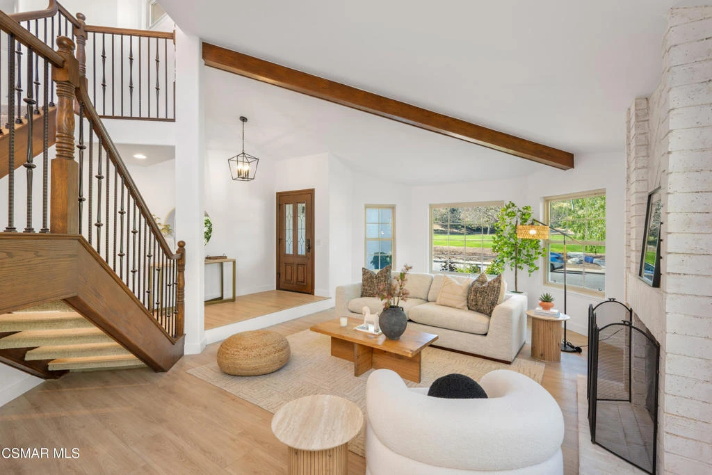 Private pool home in the desirable Southshore Hills community of Westlake Village. Ideally located across from a park, offering open views, added space, and a bright, airy setting. This beautifully refreshed 4-bedroom, 3-bath residence features new interior and exterior paint, newly painted kitchen cabinets, new light fixtures, new flooring throughout the downstairs, and recent roof updates.Abundant windows fill the home with natural light, enhancing its warm and inviting feel. The open-concept kitchen and family room offer direct access to the backyard and pool, creating seamless indoor-outdoor living. The thoughtful floor plan includes a bedroom and bath on the main level, ideal for guests or a home office. The dining room showcases striking beamed ceilings, while the living room is anchored by a classic brick fireplace. Upstairs, the spacious primary suite offers a private ensuite bath.The backyard is designed for effortless entertaining with a pool, multiple seating areas, and the added privacy of no neighbors directly behind. A spacious side yard provides additional areas to relax and enjoy.