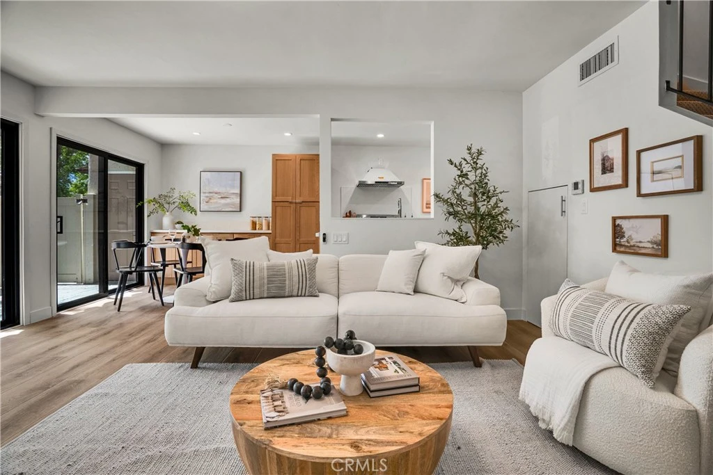Best Value in Village Green! Fully Remodeled End Unit w/ Private Patio & Garage. Fully renovated from exterior to inside the walls with all new materials—this home offers a true turnkey, worry-free living experience. Located in a private end-unit setting within the highly desirable Village Green community in the heart of Westlake Village, this beautifully updated two-story home stands out from others in the complex. Step into a bright, open-concept interior featuring wide-plank flooring, smooth ceilings, recessed lighting, and abundant natural light. The spacious living and dining areas flow seamlessly to a private patio through oversized sliding glass doors, creating effortless indoor-outdoor living. The completely remodeled kitchen showcases warm wood cabinetry, quartz countertops, stainless steel appliances, a deep sink, and a functional peninsula ideal for both everyday living and entertaining. Additional highlights include updated systems, in-unit laundry, an attached garage, and enhanced privacy as a premium end unit. Village Green offers lush greenbelts, pool & spa, sports courts, recreation room, and guest parking. Ideally located near shopping, dining, grocery stores, top-rated schools, and easy freeway access.