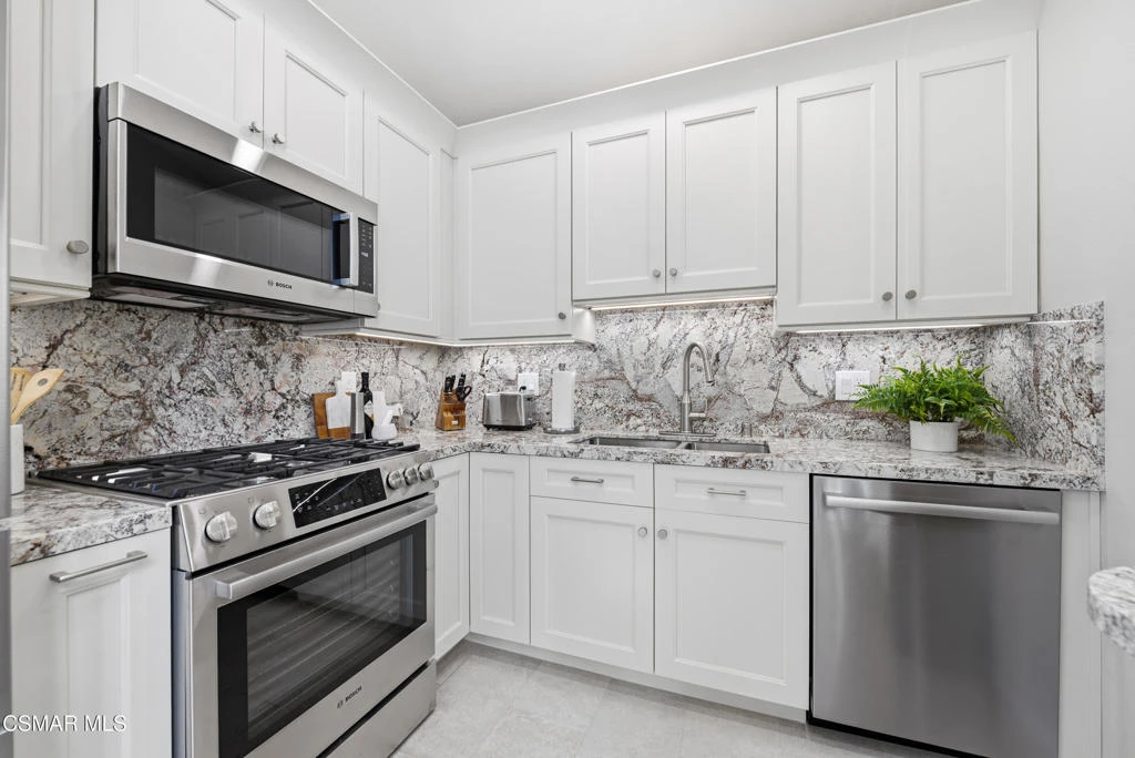 Welcome to this beautifully updated end-unit condo in the desirable Westpark community of Westlake Village. Soaring ceilings and abundant natural light create an airy, inviting living space centered around a cozy fireplace -- perfect for relaxing or entertaining.The remodeled kitchen features white shaker cabinetry, quartz countertops, and stainless-steel appliances, blending modern style with everyday functionality. The spacious primary suite offers a walk-in closet and an updated ensuite bath with a sleek walk-in shower. A versatile guest bedroom works perfectly as a home office, den, or flex space, and the guest bath has been tastefully updated with a tub/shower combo.Enjoy morning coffee or evening sunsets on your private balcony. Additional highlights include two gated parking spaces, ample guest parking, and resort-style amenities including pool, spa, and greenbelts.Ideally located in prime Westlake Village near parks, shopping, dining, and convenient freeway access -- this move-in-ready home offers comfort, style, and lifestyle all in one.