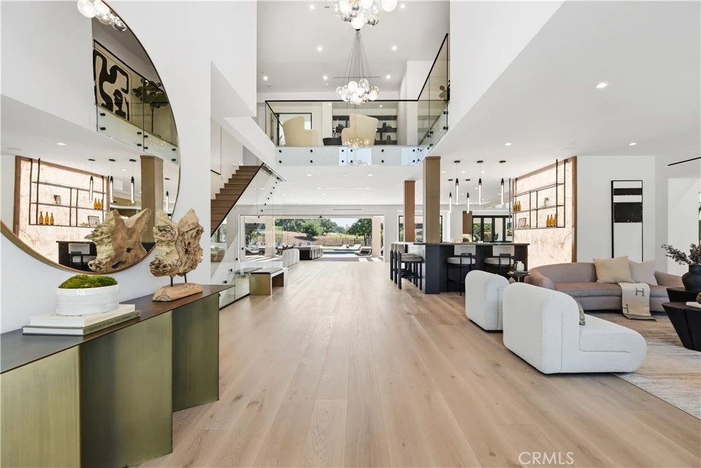 This gorgeous, brand new view estate with a premier location in the heart of North Ranch, is sited at the end of the cul de sac on a privately gated street. Spanning over 9,000 square feet of luxury living (with guest house) and boasting sensational views of the fairway of North Ranch Country Club, the home features a superb, open floor plan that's flooded with natural light and enhanced by top quality finishes throughout. There are six large ensuite bedrooms, including the stellar primary suite with retreat, two sided fireplace, all stone bath with steam shower, room sized custom closet and a big walk-out view balcony. Additional amenities include a beautiful, center island chef's kitchen complete with counter seating, wide open to the big great room with nearly 30' of sliding walls of glass, bringing the outdoors in, plus an adjoining lounge area with back-lit Onyx wet bar & glass encased wine cellar, a media room, and casual living & dining rooms that are perfect for easy entertaining. The spacious grounds include a sparkling pool & spa, your own pickleball court, a large sunken firepit, a big covered patio with space heaters & music, and a charming guest house with an additional bedroom, bathroom & family room. Conveniently located within easy walking distance to North Ranch community park, along with nearby shopping & restaurants, and close to the beaches of Malibu, this true custom estate has much to offer.