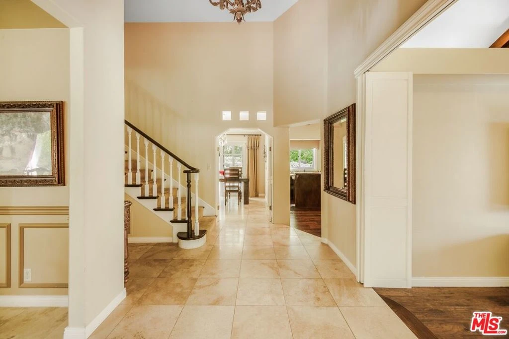 Tucked away at the end of a quiet cul-de-sac and approached by a long private driveway, this gracious 5-bedroom, 5-bath residence offers approximately 3,585 square feet of classic California living surrounded by mature trees and lush landscaping that create a rare sense of privacy. Inside, sun-filled interiors unfold with an effortless flow designed for both everyday comfort and sophisticated entertaining. Formal and informal living spaces are complemented by rich wood-like flooring, exposed beam ceilings, custom built-ins, and a warm fireplace anchoring the inviting family room. The kitchen is well-appointed with granite countertops, custom cabinetry, stainless steel appliances, and a generous center island, opening seamlessly to a breakfast area overlooking the gardens. Upstairs, the expansive primary suite serves as a true retreat with a spacious bedroom, vanity area, walk-in closet and a spa-inspired bath complete with dual vanities, soaking tub, and separate shower. Additional bedrooms offer flexibility for guests, family, or a private home office.The backyard is a private resort-like escape featuring a sparkling pool and spa, built-in barbecue, multiple seating areas for outdoor dining and lounging, and a large grassy lawn framed by mature trees. Ideally positioned near scenic hiking trails, parks, and the nearby golf course, the property also enjoys close proximity to the shopping, dining, and lifestyle amenities of Westlake Village and Thousand Oaksmaking it a wonderful opportunity to enjoy the very best of the Conejo Valley lifestyle.