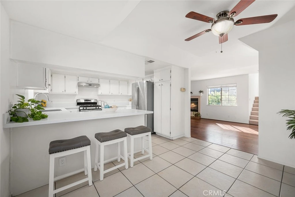 Welcome to this beautifully updated townhome located in a quiet, gated community that offers both comfort and convenience. Situated in a well-maintained, small enclave with low HOA dues, this home features an open and airy living space filled with natural light. High vaulted ceilings in both upstairs bedrooms create a sense of spaciousness, while the newly installed light-colored carpeting adds a fresh, inviting feel. The upgraded kitchen shines with recessed lighting and stunning white quartz countertops accented by subtle veining—perfect for cooking and entertaining. The master bathroom has been enhanced with a brand new dual vanity and elegant luxury vinyl plank flooring throughout the vanity area. Enjoy the ease of a large private driveway and a spacious attached 2-car garage with direct access to the home. Below the stairs, you’ll find an oversized storage room—ideal for seasonal items or added organization. Relax or entertain in the large, private patio area, a peaceful retreat perfect for outdoor dining or lounging. The community includes a relaxing spa and is conveniently located near top-rated schools, shopping, dining, and offers easy access to major freeways. This turnkey home is the perfect blend of style, function, and location—don’t miss this opportunity!