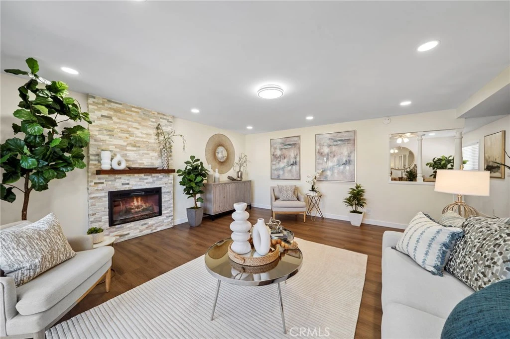 Get ready to fall in love with this charming, completely move-in-ready 4-bedroom single-story home, ideally located in one of Westminster’s most prized neighborhoods—steps to Leo Carrillo Elementary and McGarvin Middle Schools, walking distance to Elden Gillespie Park, and just two blocks to vibrant Little Saigon Village. This light-filled home showcases an open, flowing floorplan and has been masterfully transformed with extensive modern luxury upgrades, making it feel like a brand-new house. A custom entry door welcomes you into a formal foyer, opening to stunning new finishes throughout, including imported marble-type porcelain tile flooring, smooth ceilings, extensive recessed lighting, ceiling fans, dual-pane windows, custom blinds, designer paint colors, high baseboards, mirrored closet doors, and raised-panel interior doors. The chef’s dream kitchen is open to a spacious dining area and features quartz countertops and full backsplash, a center island with chic pendant lighting and bar seating, brand-new stainless appliances, a stainless farmhouse sink, and custom self-closing cabinetry with lazy Susans, spice storage, and deep pots-and-pans drawers. The elegant living room offers luxury waterproof wood-vinyl flooring, a stacked-stone electric fireplace, and sliders leading to a tranquil backyard with patio and garden areas—perfect for relaxing or entertaining. Both bathrooms are completely brand new with custom self-closing cabinetry, quartz countertops, designer lighting, and mirrors; the primary bath features a walk-in shower, while the hall bath offers a tub/shower combo, both with beautiful designer surrounds. Additional highlights include direct access to the finished garage with epoxy flooring and washer/dryer hookups. This is truly a dream home, nestled in an idyllic, pride-of-ownership, family-friendly neighborhood where memories are made and traditions begin.