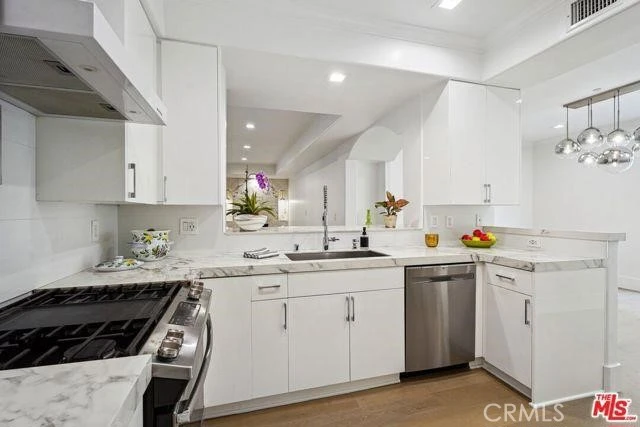 *OPEN HOUSE SATURDAY MARCH 28TH / 1:00-4:00*REDUCED/BEST PRICED CONDO IN THE AREA!* This highly desirable Westwood luxury condo is spacious, stunning and completely renovated like new! The total SQFT is 2154 including the balcony & huge private side patio (1820 SQFT on title). The space is well balanced with large living room and fireplace that connects to front facing balcony. Formal dining room adjacent to kitchen opens to oversized patio, which encompasses the entire length of the unit, and makes for great al fresco dining/entertaining. Kitchen w/high end stainless steel appliances, and both kitchen and all bathrooms with polished porcelain counter tops. Spacious primary bedroom suite with fireplace, walk-in closet w/built-ins, and opulent attached bath, featuring frameless shower door, freestanding tub, LED mirrors. Secondary bedroom and addition full bathroom off hall. Additional features include new wide plank wood floors, dual pane windows/doors, recessed lighting, white shaker doors, side by side laundry closet, and so much more. Building has a community gym and guest parking. Great proximity to Westfield Century City mall, Westwood Village and UCLA. Photos have been virtually staged.