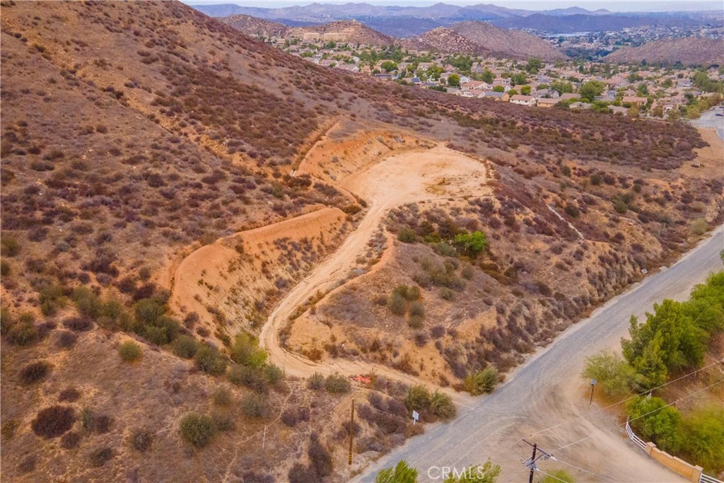 Welcome to Lost Road—where country living meets city convenience! This exceptional 5-acre vacant lot offers endless potential with a cleared and graded buildable pad already in place that is just shy of 1/2 acre. The pad, approximately 200 ft. (N-S) by 75–120 ft. (E-W), is ready for your custom home, with an unpaved driveway. A septic perc test (2015) and well location study (2015) have also been completed, giving you a head start on the building process. The property showcases breathtaking 180-degree panoramic views of Canyon Lake, rolling hills, lush valleys, and the San Bernardino, San Gabriel, and San Jacinto mountain ranges. Enjoy sunrises, moonrises, and ever-changing scenic beauty right from your future doorstep. Perfectly situated for families, this property is within walking distance to both an elementary and middle school, while still offering the privacy and tranquility of a rural setting. Just minutes away, you’ll find all the modern conveniences of shopping, dining, and entertainment. Plus, it borders the highly desired Canyon Hills neighborhood, adding to its desirability. Whether you envision a peaceful retreat, family estate, or investment opportunity, this property delivers with its prime location, stunning vistas, and build-ready features. Buyer to verify all information with the city and/or county for allowable uses and requirements. Buyer responsible for checking zoning, utilities, permits and property boundaries.