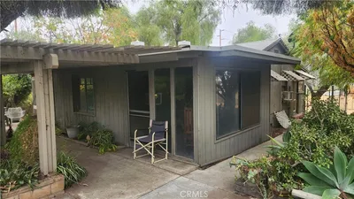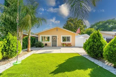 Cute, three bed two bath home on great size lot on a cul de sac. Concrete patio with large area to entertain. Planter box with orange trees, two large metal sheds plus a two car garage. Garage has a room addition for an office or another room.