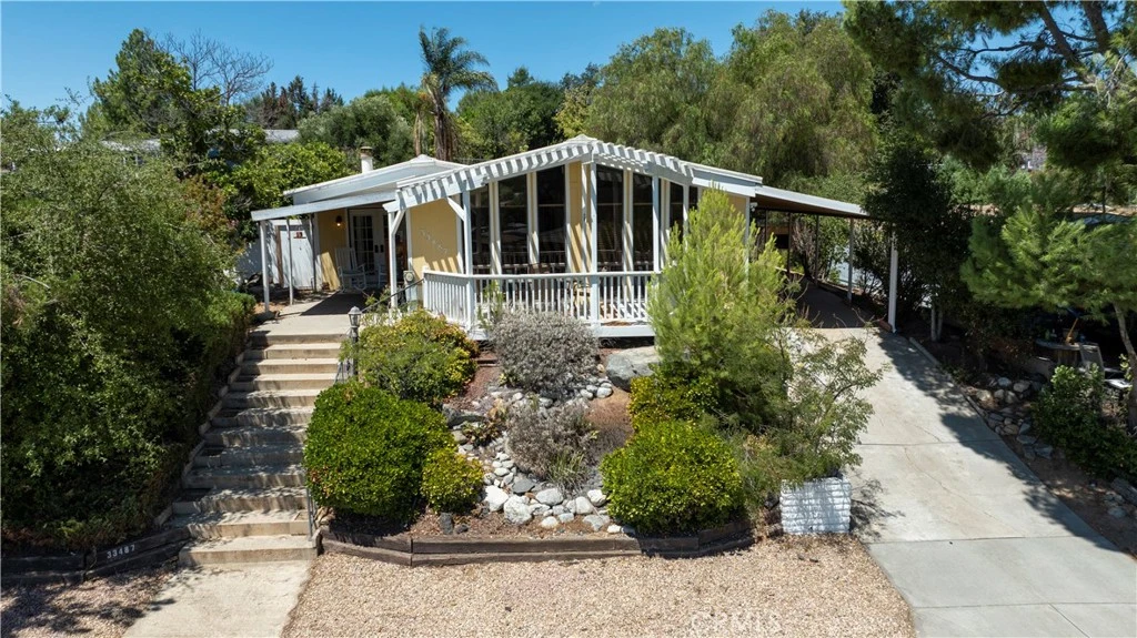 Welcome to 33487 Harvest Way, a charming home located in the heart of the sought-after THE FARM community in Wildomar. This inviting residence is situated on a generous 8,276 square foot lot, and uniquely, this manufactured home is permanently affixed to your own land. With easy access to both the 15 and 215 freeways, this home offers seamless commuting options while providing an escape into a family-friendly community filled with abundant amenities. Spanning 1,800 square feet, this home features 2 comfortable bedrooms and 2 well-appointed bathrooms. The spacious living room, accentuated by a cozy fireplace, provides a warm setting for family gatherings and relaxation. An expansive entryway doubles as a den or office, ideal for those working from home or in need of a versatile utility room. The convenience of an inside laundry room further enhances the everyday functionality of this home. The exterior is equally impressive, offering two sheds for additional storage, there is plenty of room to create your own backyard oasis. The property boasts a covered carport that accommodates 2 or more cars, ensuring ample parking space for residents and guests alike. The elevated property offers a lovely view of the rolling hills, adding a tranquil touch to your living experience. THE FARM community is brimming with amenities, including three pools and spas, a clubhouse, basketball and tennis courts, a dog park, and community gardens. For nature enthusiasts, scenic hiking trails and fishing ponds are just a stroll away. Moreover, RV storage is available for those with a taste for adventure. This vibrant community is designed to foster an active and engaging lifestyle for all its residents. With its scenic views and prime location, this home is an ideal canvas for your special upgrades and personal touches. Embrace the opportunity to make it truly your own in this dynamic and welcoming neighborhood.