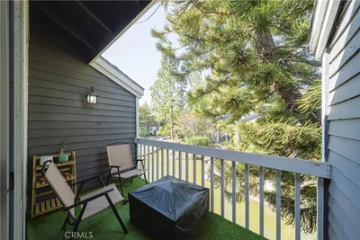 Welcome to this charming Pine Creek Community condo. This inviting home features two spacious bedrooms with vaulted ceilings, including a primary bedroom with two closets and access to a private balcony overlooking a creek. The open living and dining areas flow seamlessly to a patio with a barbecue hook-up, perfect for relaxing or entertaining. The patio also includes a convenient laundry area. Recent updates include recess lighting in the kitchen and primary bedroom vanity, and fresh paint throughout. Enjoy central A/C and two assigned parking spaces (open space near the unit, and single carport space as well. Included in the sale are the stove, refrigerator, washer, and dryer. This home is located close to shopping, dining, public transportation, freeways, and the Pacific Coast Highway, and is within 15 minutes of local beaches. Welcome home to a perfect blend of comfort, convenience, and community living.
