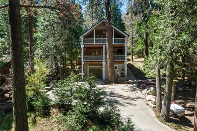 Nestled in the woods of Alta Sierra, this 4-bedroom cabin offers a refined blend of rustic charm and modern comfort designed to welcome families, create lasting memories, and perform beautifully as a vacation retreat. The kitchen features granite countertops and stainless-steel appliances, and the open layout makes entertaining a breeze. With ample space for the entire family, you'll love the wraparound decking that invites outdoor living year-round. Minutes from the ski resort and 15 minutes to the lake, this home is ideal for year-round adventures. Inside, a thoughtfully designed floor plan provides flexible sleeping arrangements, a dedicated entertainment corner, and cozy nooks for reading or relaxation. The surrounding pines create a serene backdrop while you enjoy easy access to outdoor activities, dining, and nearby amenities. A practical basement storage area offers additional space for gear and belongings, helping keep your living areas uncluttered and organized.