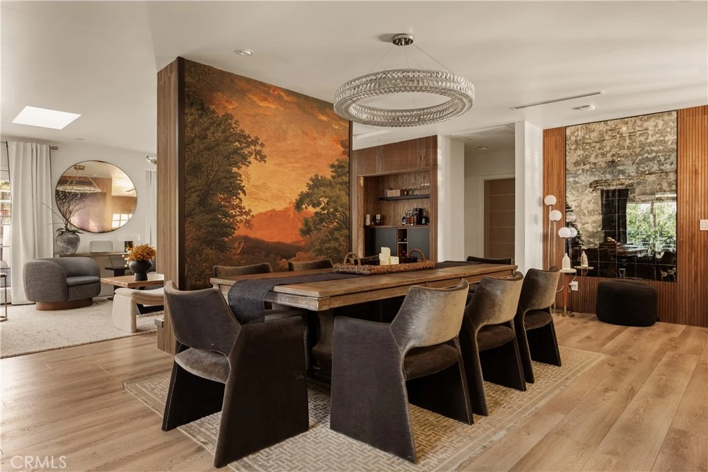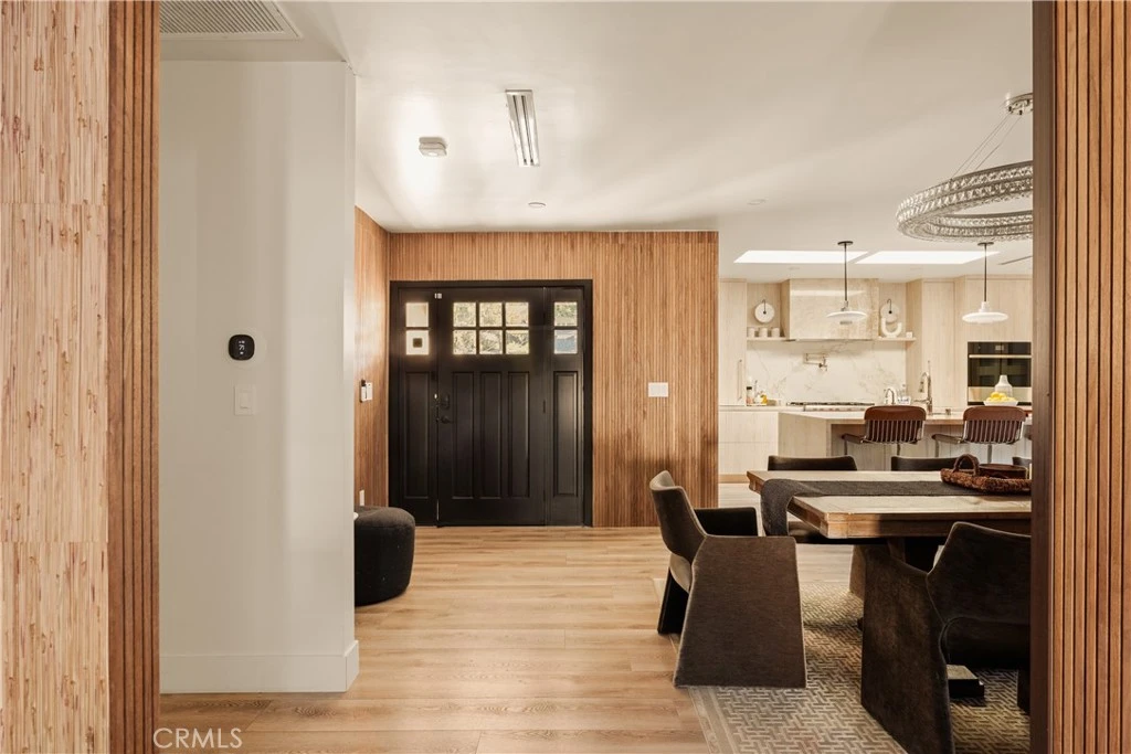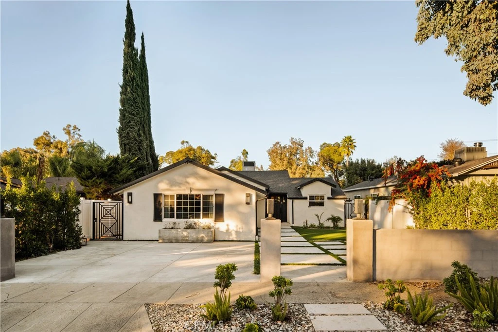 Set on a picturesque, tree-lined street just South of the Boulevard, this beautifully reimagined 3-bedroom, 2-bath residence offers 1,995 square feet of thoughtfully designed living space on a 6,000-square-foot lot. The home blends warmth, functionality, and refined modern design, with all major systems fully updated for turnkey living. Abundant natural light pours in through skylights, highlighting rich hardwood floors and an open, airy layout ideal for both everyday living and entertaining. The expansive kitchen serves as the heart of the home, featuring Taj Mahal Quartz countertops, a substantial center island with generous seating, Sub-Zero refrigeration, Wolf appliances, a built-in espresso machine, and sleek European-style cabinetry. Open to the dining and living areas, the space is enhanced by recessed lighting, smart lighting, built-in speakers, and a striking fluted wood fireplace, creating a sophisticated yet inviting atmosphere. The home is fully Google Home–integrated, allowing seamless control of lighting and smart features throughout. The primary suite offers a serene retreat with ample windows and multiple closets, while both bathrooms have been tastefully updated with timeless finishes. Significant upgrades include all-new plumbing, electrical, HVAC system, insulation, drywall, and stucco, along with a new water heater, upgraded door hardware, and enhanced exterior lighting—delivering peace of mind and modern efficiency. Outdoors, the private backyard features a generous lawn and a gas line ready for a BBQ, perfect for relaxed California living and entertaining. Ideally located near top public and private schools, Pierce College, Warner Business Center, Kaiser Hospital, the new LA Rams training facility, Westfield Shopping Mall, The Village, Woodland Hills Country Club, and Warner Center with its premier dining, shopping, and entertainment. A rare opportunity to own a fully updated, smart-enabled home in one of the area’s most desirable South-of-the-Boulevard neighborhoods.