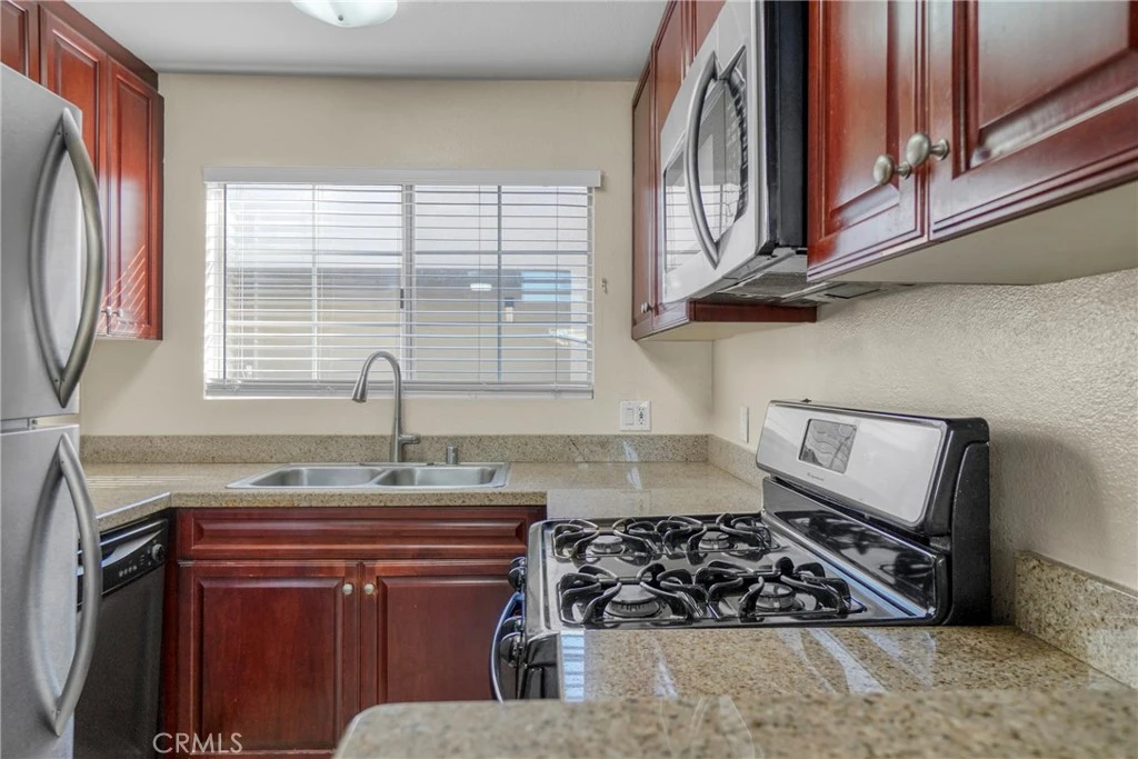Come see this beautifully upgraded third-floor condo featuring 2 bedrooms and 2 bathrooms, located in the highly sought-after community of “The Met” in Woodland Hills. This bright and inviting home boasts soaring vaulted ceilings, newer carpeting throughout, and abundant natural light that fills the open living spaces. Enjoy a partial view of the main pool from your spacious private balcony—perfect for relaxing or entertaining. The kitchen is designed for both style and function, featuring granite countertops, stainless steel appliances (refrigerator, oven, and microwave), and an in-unit washer and dryer. The adjacent dining area flows seamlessly from the kitchen, creating an ideal layout for gatherings. The living room offers dramatic vaulted ceilings and a beautiful fireplace, while the bedrooms are generously sized with ample closet space for comfortable living. Additional conveniences include access to a community laundry room and two covered tandem parking spaces. Ideally located within walking distance to The Village at Warner Center, offering a vibrant selection of restaurants, bars, movie theaters, and Warner Center Park, and just minutes from Westfield Topanga Mall. Residents of The Met enjoy resort-style living within a guard-gated community featuring exceptional amenities: six lighted tennis courts, four sparkling pools, indoor basketball and racquetball courts, a fully equipped fitness center, a children’s playground, and 24-hour security. Experience the best of Woodland Hills living in this exceptional home!