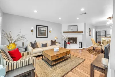 End unit townhome set within a gated, park-like community in the heart of Woodland Hills. Offering two bedrooms and one-and-a-half bathrooms, this residence features a private enclosed patio and a thoughtfully updated interior with wood flooring and an updaded kitchen. Mirrored accents in the dining and living areas enhance the sense of space and natural light. The main level includes a guest powder room and a dedicated laundry room with washer and dryer. The spacious covered patio is ideal for outdoor dining, entertaining, gardening, or catching a sunset. Additional highlights include generous storage, a covered parking space with overhead storage units, and access to the community’s expansive 8.5-acre grounds. Residents enjoy beautifully maintained greenbelts, walking paths, mature landscaping, a sports court, putting green, two swimming pools plus a children’s pool, playground, and a recreation room complete with a full kitchen. The monthly HOA fee provides exceptional value, covering property taxes, fire and earthquake insurance, water, trash, sewer, exterior building maintenance, and grounds upkeep. Ideally located near The Village, Westfield Topanga, Warner Center Park, Kaiser and UCLA medical facilities, restaurants, and Concerts in the Park, with easy access to Topanga Canyon’s scenic hiking trails, this home offers both convenience and lifestyle in one of Woodland Hills’ most central locations. A fantastic opportunity in a well-established community. Some photos have been virtually staged, edited, and / or enhanced.