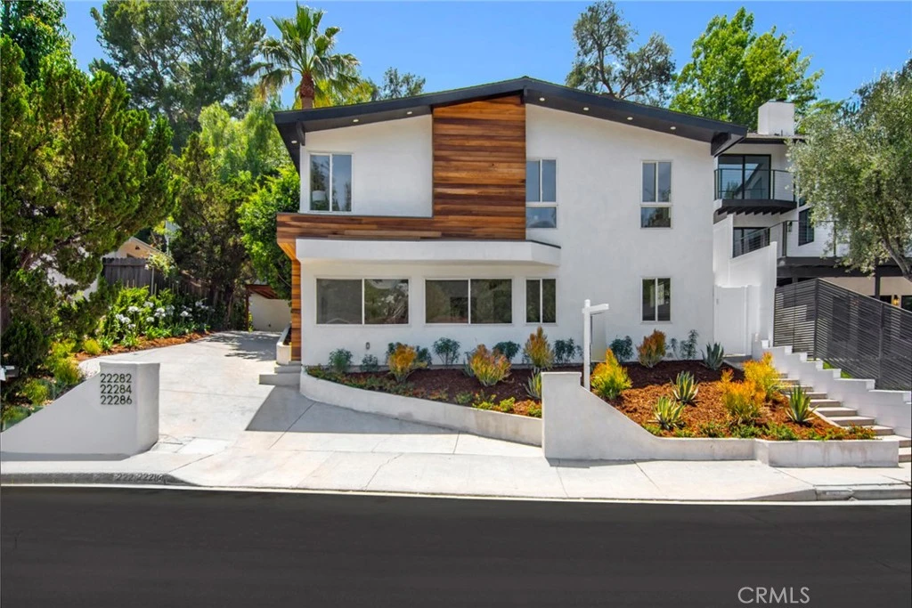 22284-Main House: 4 bd, 3.5 bth, 2012 Sqft. ADU: 22282: 1 bd, 1 bth, 538 Sq Ft. 22286-ADU: 1 bd, 1 bth, 800 sq ft. Welcome to this stunning 3 UNIT property located south of the Boulevard in one of Woodland Hills’ most desirable pockets. Just steps from vibrant shops, restaurants, and cafes, this unique property combines the charm of mid-century design with modern functionality—ideal for investors, multi-generational living, or owner-occupants seeking supplemental income.The main house is the star of the show, boasting dramatic floor-to-ceiling windows that flood the living space with natural light and create a seamless connection to the outdoors. With a strong nod to mid-century modern design, the home overlooks a flat, grassy backyard—a perfect setting for summer entertaining or quiet relaxation.Two additional fully remodeled units provide flexibility and income potential. The lower-level unit, located beneath the main home, offers a private entrance, sleek finishes, and a thoughtful layout. The third unit, a standalone rear dwelling, also features its own entrance and has been designed with comfort and privacy in mind. All three units have been extensively renovated in a clean, contemporary style that feels fresh, timeless, and move-in ready. Each unit enjoys its own laundry hookups and private address, offering true independence for occupants. A spacious driveway provides ample parking for all three units—an increasingly rare convenience in this area. Whether you’re looking for a stylish investment, a multi-family compound, or a primary residence with built-in rental income, this exceptional property delivers on every level.