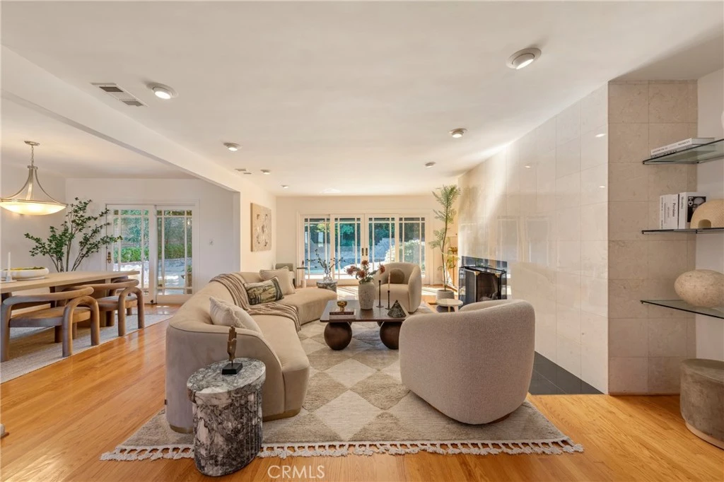 Stunning multi-level retreat nestled in the hills, offering privacy, lush surroundings, and a seamless indoor-outdoor lifestyle. Enter through the double-door entry into a thoughtfully designed home where natural light flows throughout the main living spaces. The layout is ideal for both everyday living and entertaining, with the kitchen and living room located on the main entry level, while bedrooms and additional living areas are intelligently separated across multiple levels for added privacy and flexibility. The home has been extensively maintained and improved, featuring a recently replaced roof, upgraded electrical systems, a tankless water heater, serviced HVAC, new stucco, and completed attic insulation. The backyard is a true sanctuary, highlighted by a private PebbleTec pool and spa with separate heating systems, updated pool equipment, and beautifully landscaped grounds with mature fruit trees, including lemon, orange, grapefruit, fig, and lime. Additional features include a bar/den and a dedicated large theater screening room, complete with a professional, motorized Stewart Filmscreen, indoor laundry, direct-access garage with smart opener, exterior lighting, covered patio areas, outdoor speakers with Bluetooth connectivity, and remote-controlled shades. This special property blends comfort, function, and timeless character in a serene hillside setting—a rare opportunity not to be missed.