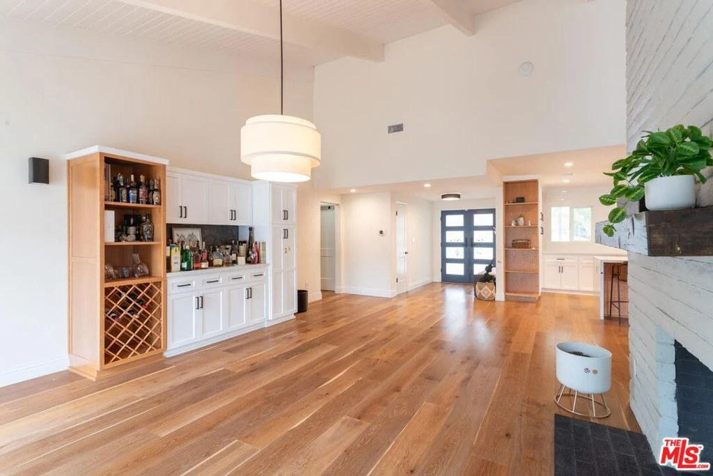 Spacious single-level 5-bedroom home set on a prime corner lot in the desirable El Camino Real School District. Originally designed by acclaimed architect Charles Du Bois, the residence reflects the timeless character and architectural style that define many of Southern California's most admired mid-century homes.Double doors open to a bright living room with soaring vaulted and beamed ceilings. The remodeled kitchen with top-tier appliances flows into a large family room centered around a striking double-sided floor-to-ceiling fireplace, creating an ideal space for everyday living and entertaining. Wide-plank hardwood floors, recessed lighting, and thoughtful updates enhance the home while preserving its architectural charm.The private primary suite opens to the backyard and features a beautifully updated en-suite bath and expansive mirrored wardrobe. Four additional bedrooms offer flexibility for family, guests, or a home office, with one bedroom positioned on the opposite side of the home for added privacy.The sun-filled backyard features a child-safe pool, mature citrus trees including lemon, grapefruit, and pomegranate, space for gardening, and multiple areas for outdoor dining. A rare opportunity to own a distinctive Charles Du Bois designed residence in Woodland Hills.