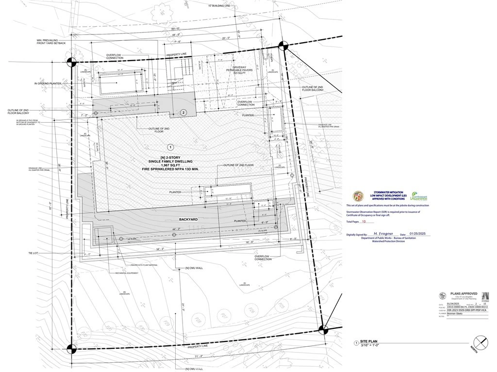Vacant Lot with Permits Pulled and Fees Paid – 4254 Canoga Avenue (Lot No. 5257, Cut 1 & 2) Excellent opportunity to build a beautifully designed single-family residence in a highly desirable Woodland Hills neighborhood. The property comes with a full set of approved plans and building permits already pulled, with permit fees paid, for a stylish home featuring approximately 2,225 sq. ft. of building area (1,913 sq. ft. RFA), including an attached garage. The lot is approximately 5,317 sq. ft. (per tax assessor) and is situated on an uphill site — no costly caisson work required. All approvals have been secured through the Mulholland Corridor Design Review Board, and the architectural, structural, grading, and landscape plans are included. Construction can begin immediately. This is a great opportunity to develop in a prime location surrounded by quality homes. The proposed design blends modern style with the natural hillside setting, creating a perfect balance of comfort and elegance. Note: Buyer to verify all information independently. Also see listings for 4256 and 4260 Canoga Avenue for nearby opportunities.