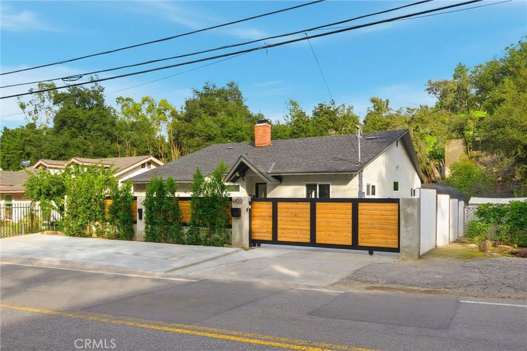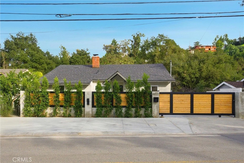 Gated, grand and impeccably designed for a discerning buyer. On the wide part of Canoga Ave. just past the golf course, sits a newly remodeled home that offers a rare combination of privacy, fresh modern design and brand new upgrades. Behind a new electric gate, the home showcases a new roof, smooth stucco exterior, elevated ceilings, and wide-plank white oak wood floors throughout. The thoughtfully designed interior features three bedrooms and two spacious bathrooms, each with sleek step-in showers, and a tankless water heater for on-demand efficiency. The open concept living room in anchored with a stylish stone gas fireplace and flows effortlessly to the dining area, kitchen and rear patio. The chef’s kitchen is equipped with premium KitchenAid and Bosch appliances including double ovens, eight burner gas range top with pasta pot filler, microwave and French door refrigerator. The custom cabinets provide amble space for a pantry and open shelving to display your finest serve ware. The view from the large slider that frames the sparkling pool and flat, grassy backyard are perfect for entertaining or everyday relaxation. The rear patio is finished with durable, low-maintenance Trex decking, while the front lounge area welcomes you with a tranquil fountain. Additional highlights include motion-sensor property lighting, a Ring security camera system, indoor laundry in hallway, a paved parking pad in front, and an extra-long driveway leading to a converted garage space not included in the square footage, ideal for a home office, gym, studio, or easily converted to an ADU. A rare blend of style, privacy, and versatility in a prime Woodland Hills location.