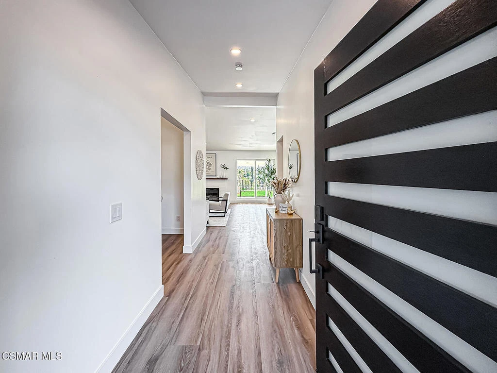 Panoramic views set the stage for this exceptional, fully remodeled single-story home in sought-after Woodland Hills. Rarely does a property combine forever mountain views, a true open layout, and extensive modern upgrades in one seamless package.This 4-bedroom, 2.5-bath residence has been thoughtfully reimagined from top to bottom, offering abundant natural light and an effortless flow ideal for both everyday living and entertaining. The stunning chef's kitchen features sleek European-style cabinetry, generous storage, and all-new Forno stainless steel appliances--including a striking 60'' refrigerator--opening directly to the family room and casual dining area.Every detail has been refreshed: new interior and exterior paint, a new front door, interior doors, custom closet and pantry shelving, LED lighting throughout, and wide-plank engineered laminate flooring. All bathrooms have been completely redesigned with new tile, fixtures, vanities, lighting, and finishes.The formal living room is anchored by a brick-accent fireplace, with a separate formal dining room providing additional space for gatherings. The primary suite offers a peaceful retreat with direct access to the backyard and generous closet space. Room sizes throughout are spacious and well-proportioned.Outside, the low-maintenance backyard features turf landscaping, covered seating, and unobstructed mountain views--perfect for relaxing or entertaining. Additional highlights include a finished two-car garage with epoxy flooring, LED lighting, and a Tesla EV charger, along with new gutters, dual-pane windows, drought-tolerant landscaping, a Google Nest thermostat, Ring doorbell, and exterior camera floodlights.Ideally located near schools, parks, and shopping, this is a rare opportunity to own a turnkey view home in Woodland Hills. A must-see for buyers seeking style, comfort, and location.