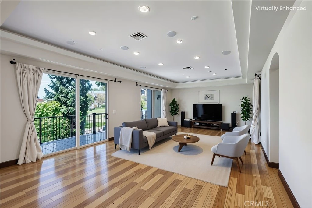 This remarkable 4-bedroom, 5.5-bathroom residence offers an exceptional combination of style, comfort, and practicality, with the added option to convert a room into a fifth bedroom. Situated in a serene neighborhood of Woodland Hills, this thoughtfully designed home features expansive living areas, premium finishes, and a seamless flow between indoor and outdoor spaces. Upon entering, you’ll immediately notice the open-concept floor plan, highlighted by bamboo flooring, soaring ceilings, and recessed lighting, creating a refined and inviting atmosphere. The gourmet kitchen is a true standout, offering custom wood cabinetry, granite countertops, a spacious center island, two full-sized sinks, top-of-the-line stainless steel appliances (including a Viking range), a built-in wine fridge, and two refrigerators—ideal for both everyday living and entertaining. Designed with versatility in mind, the home also includes a family/media room equipped with a full sound and speaker system, as well as a dedicated playroom or home office to accommodate your unique needs. The primary suite serves as a peaceful retreat, featuring vaulted ceilings, pendant lighting, a cozy sitting area with a fireplace, and a luxurious en-suite bathroom with a dual vanity, soaking tub, a steam-equipped glass-enclosed rainfall shower, and high-end finishes. Step outside to your private backyard oasis, complete with a built-in spa Jacuzzi, featuring a full spa experience with a heater and bubble jets. The backyard also boasts a BBQ area, beautifully landscaped surroundings, and mature fruit trees—creating the perfect environment for relaxation or entertaining guests. Conveniently located just 20 minutes from Malibu and 25 minutes from Santa Monica, as well as close to top-rated schools, shopping, dining, and hiking trails, this exceptional home offers the best of Woodland Hills living.